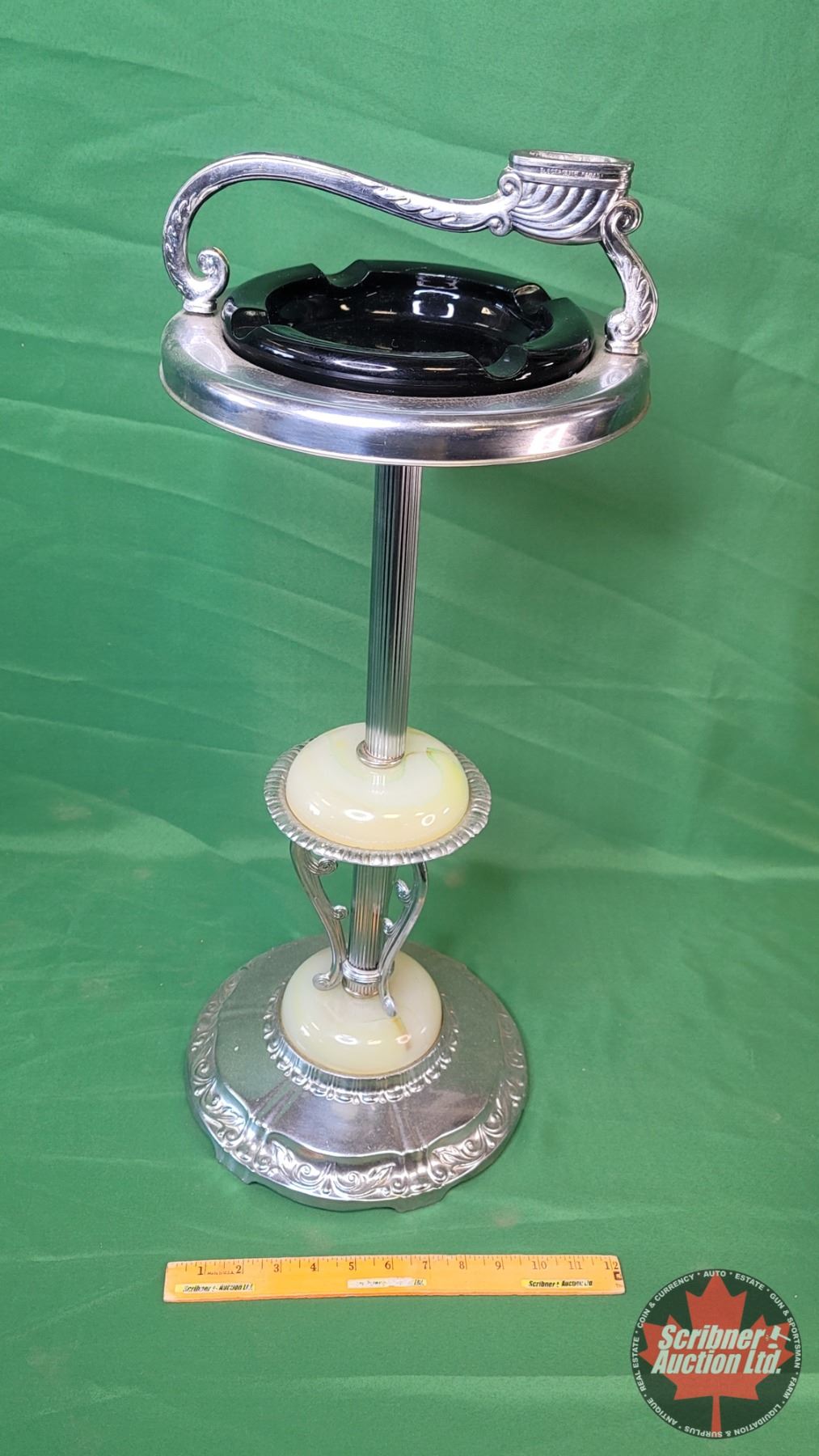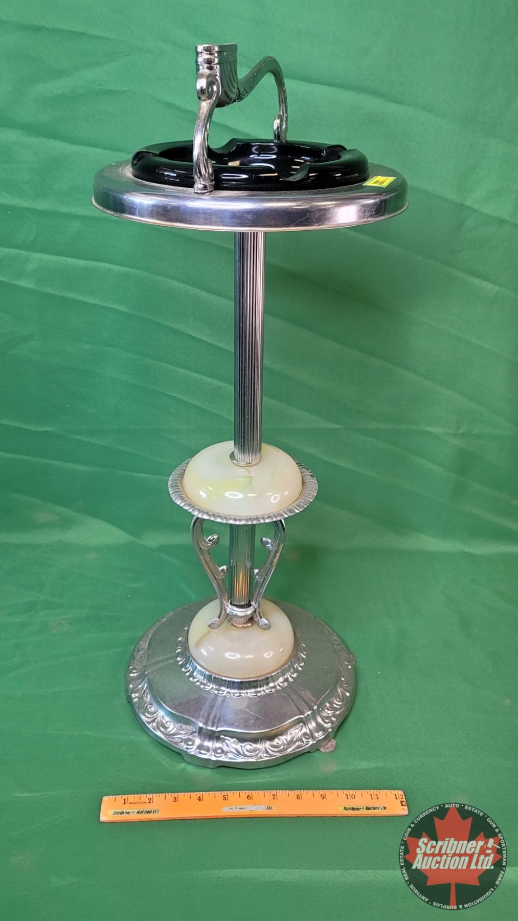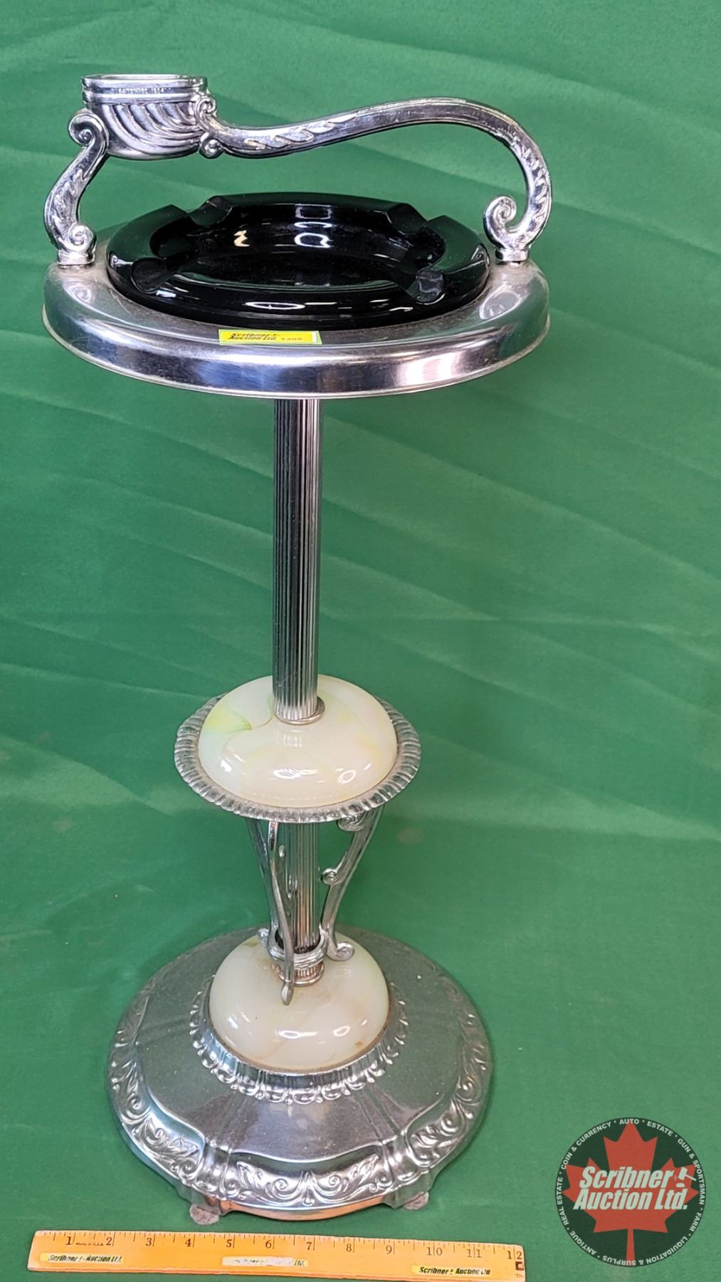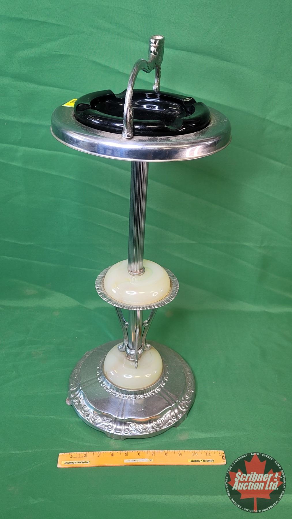 Vintage Chrome Plated Floor Ashtray / Lighter Holder (27"H) (c.1950's) (SEE PICS!)
