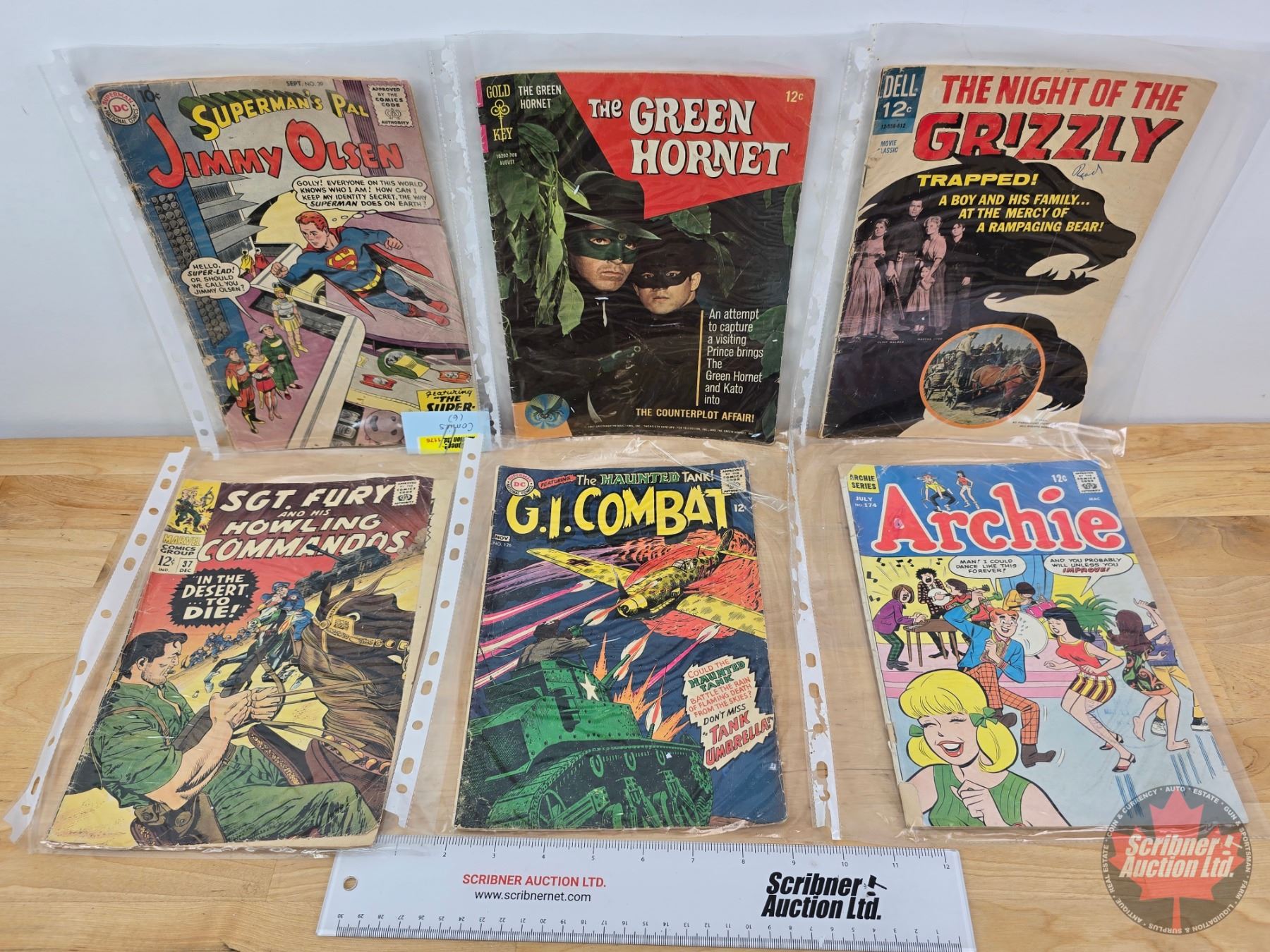 Vintage Comic Books (6): Green Hornet; Archie; Jimmy Olsen; Grizzly; GI Combat; Sgt Fury (SEE PICS!)