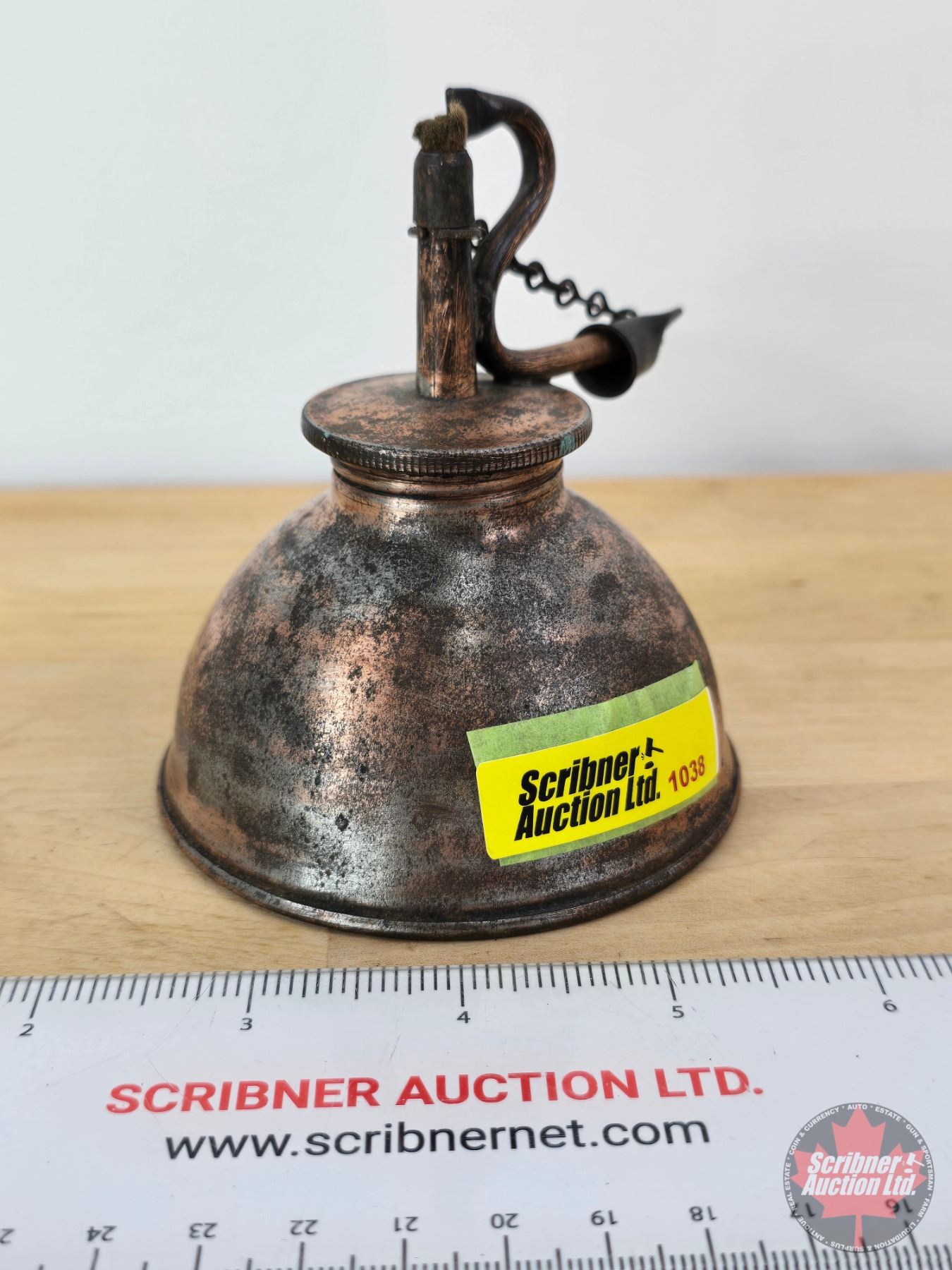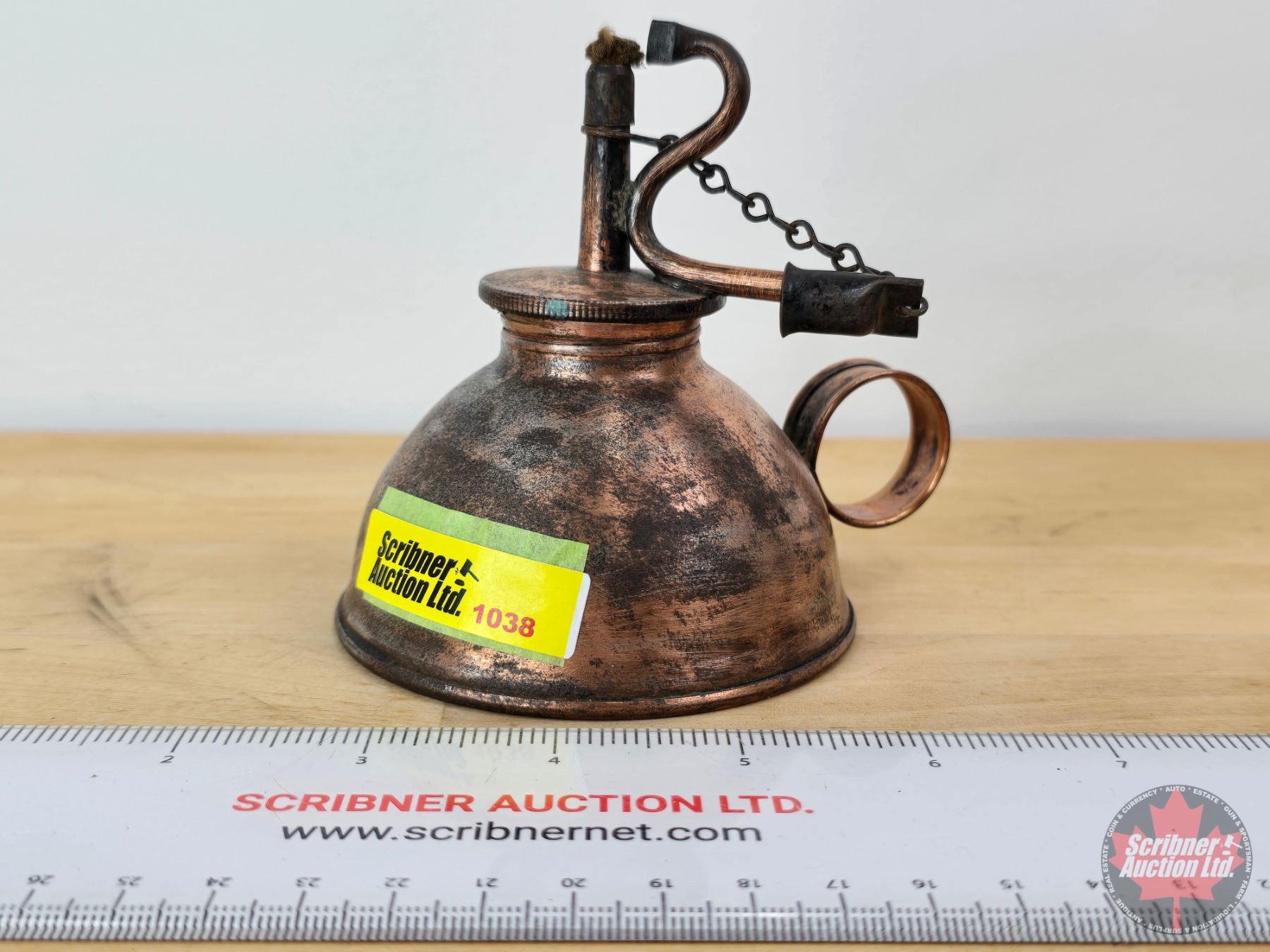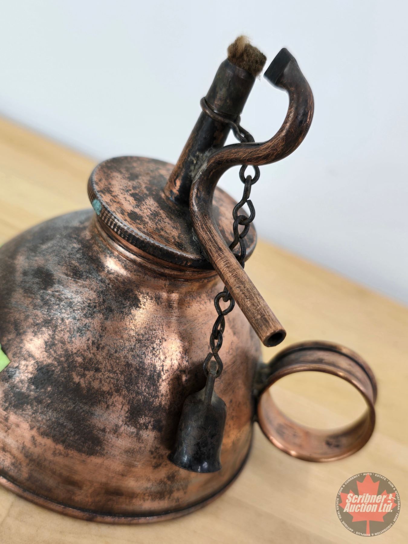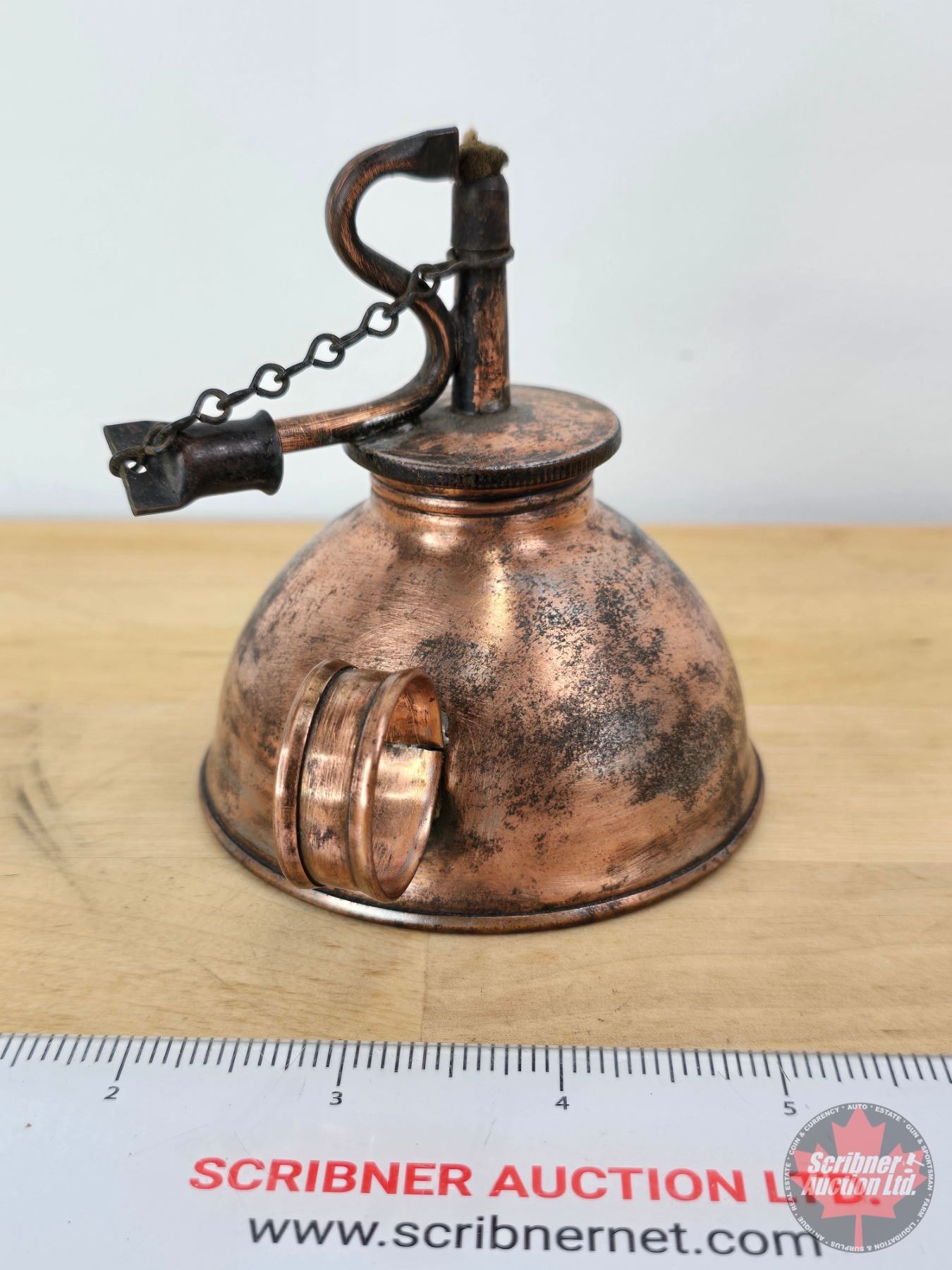 Vintage Copper Finger Kerosene Oil Lamp/Lamp Filler (4"H x 3-1/4"Dia) (SEE PICS!)