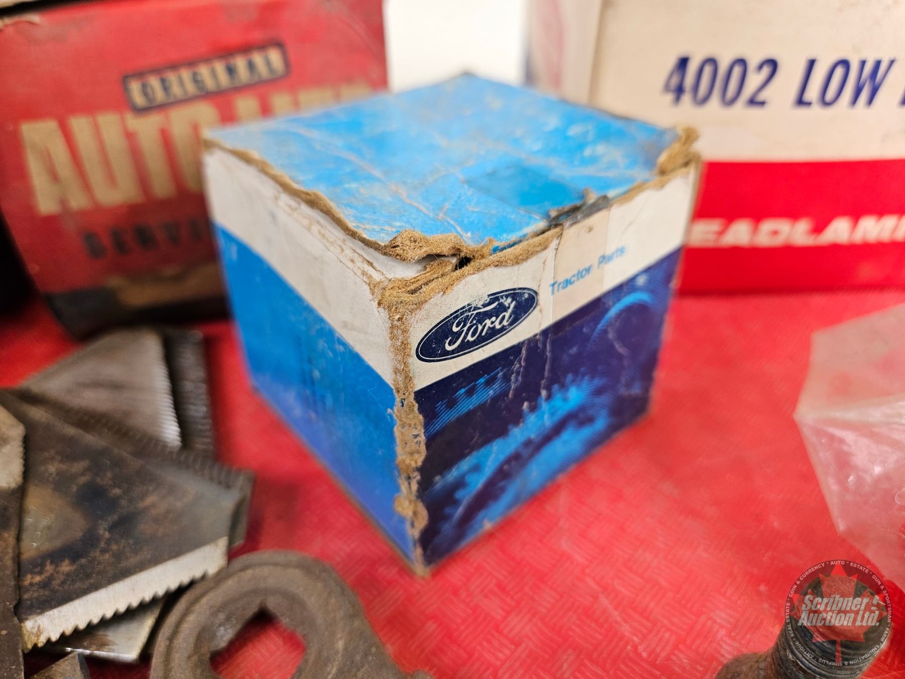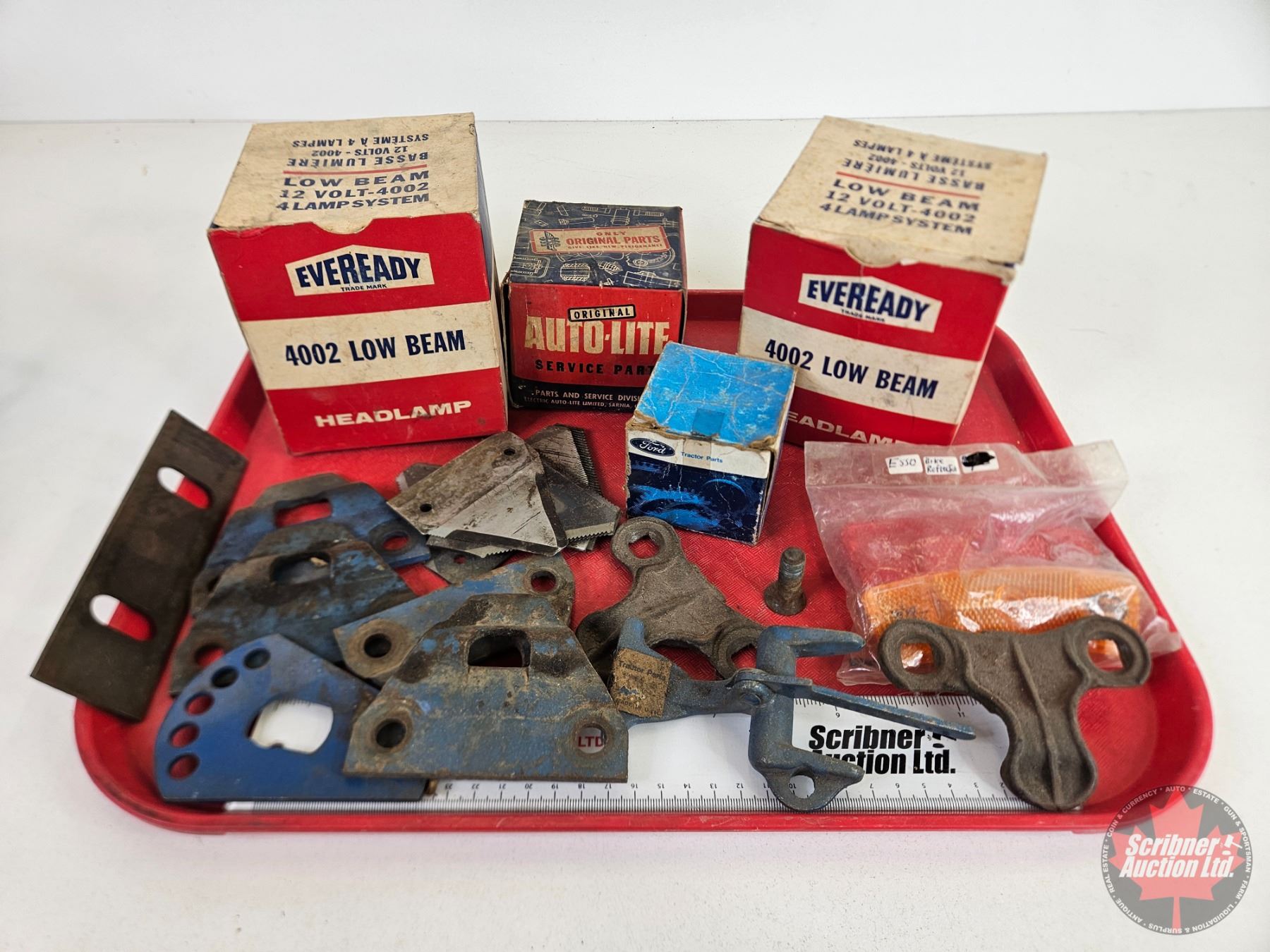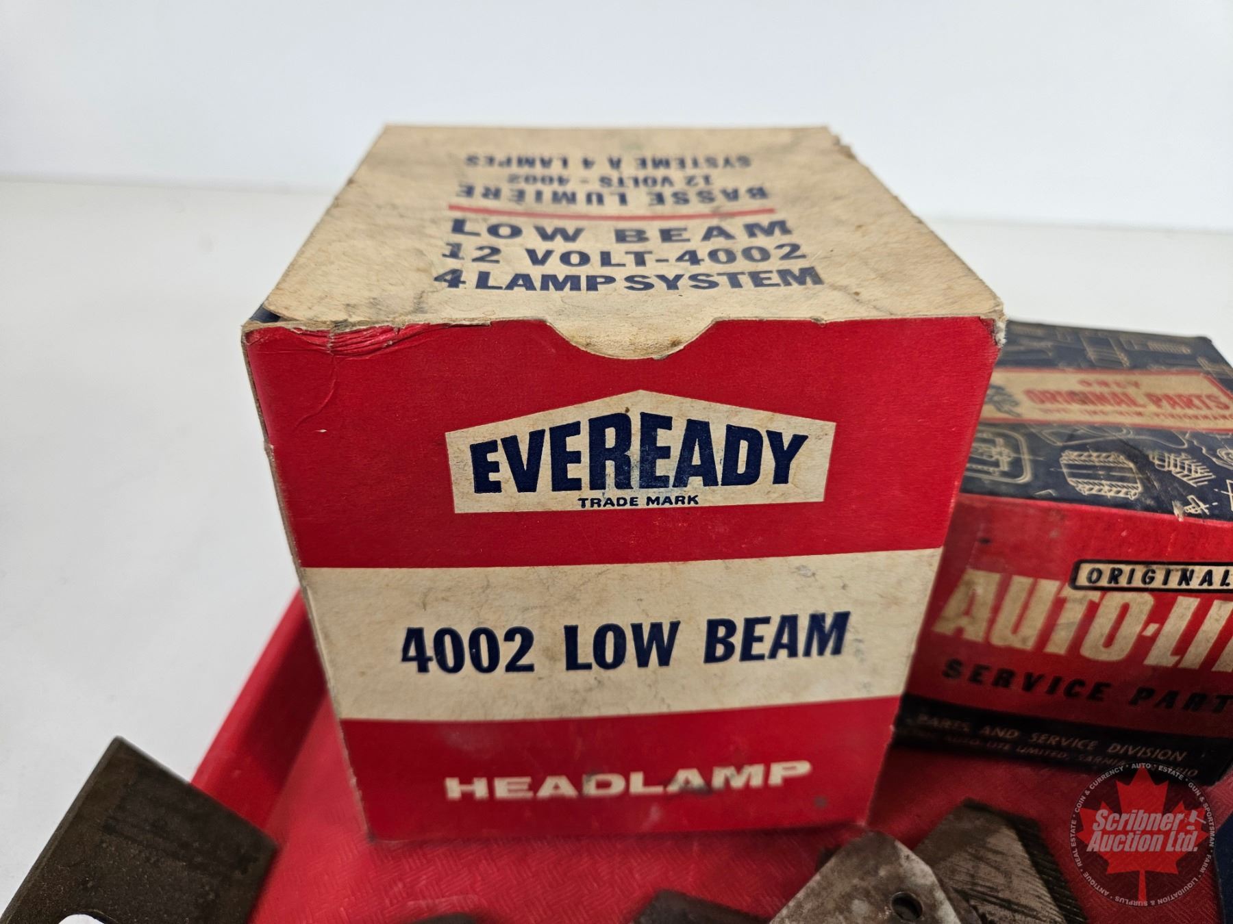 Vintage Farm / Auto Parts (Variety) : Incl. Headlamps (2); Distributor Cap; Rivets; Mower Knife Blades; Reflectors