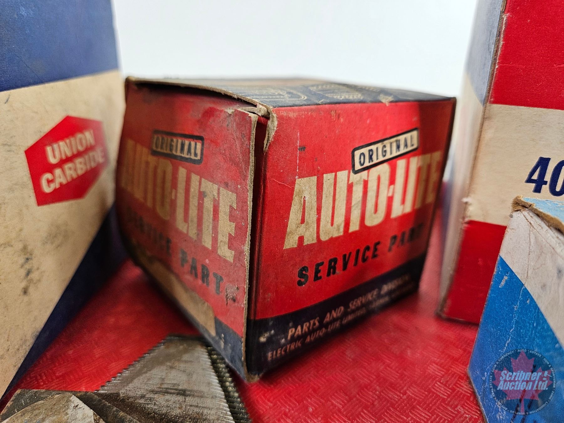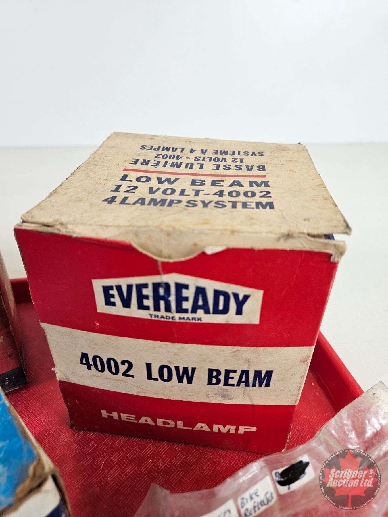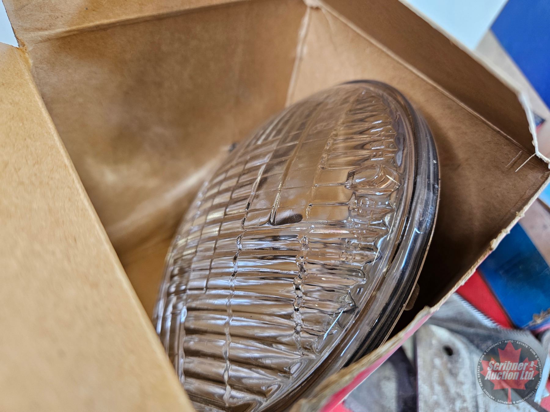 Vintage Farm / Auto Parts (Variety) : Incl. Headlamps (2); Distributor Cap; Rivets; Mower Knife Blades; Reflectors