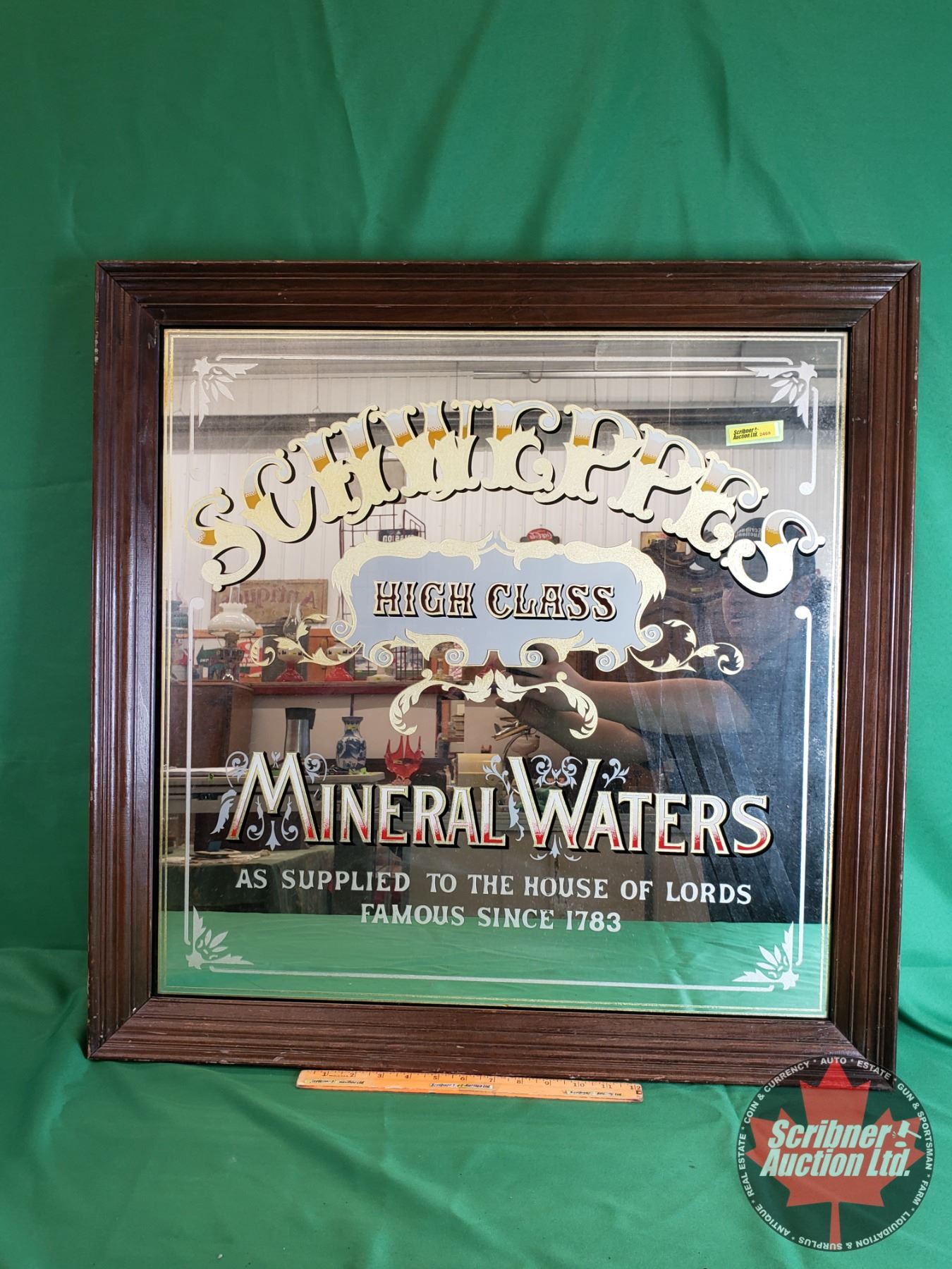 Vintage Framed "Schweppes Mineral Water" Pub Mirror (29-1/4"H x 29-1/4"W) (SEE PICS!)