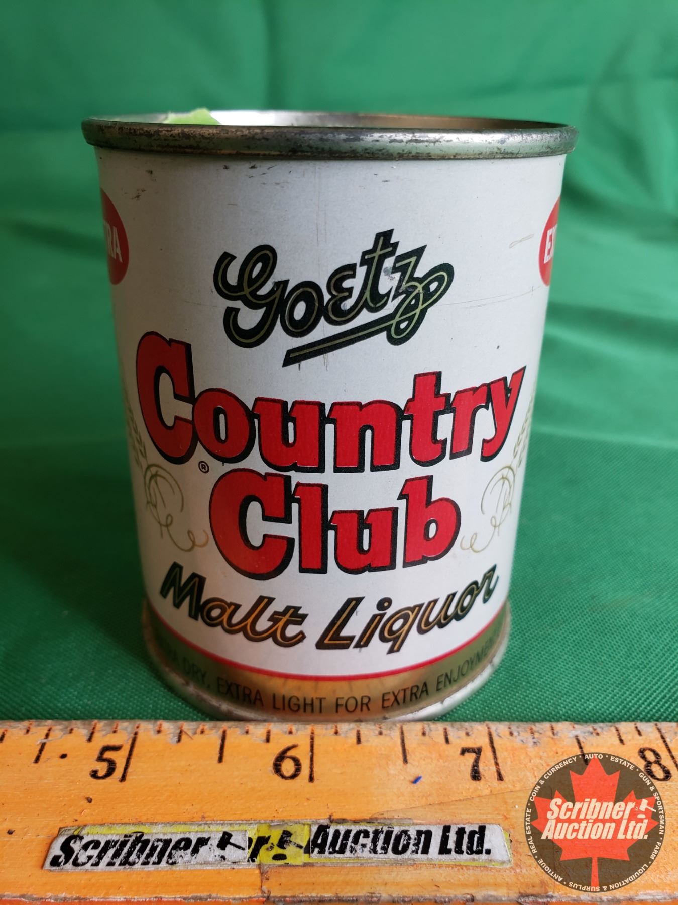 Vintage Goetz Country Club Malt Liquor Tin (Full) (3-1/4"H x 2-3/"Dia) (SEE PICS!)