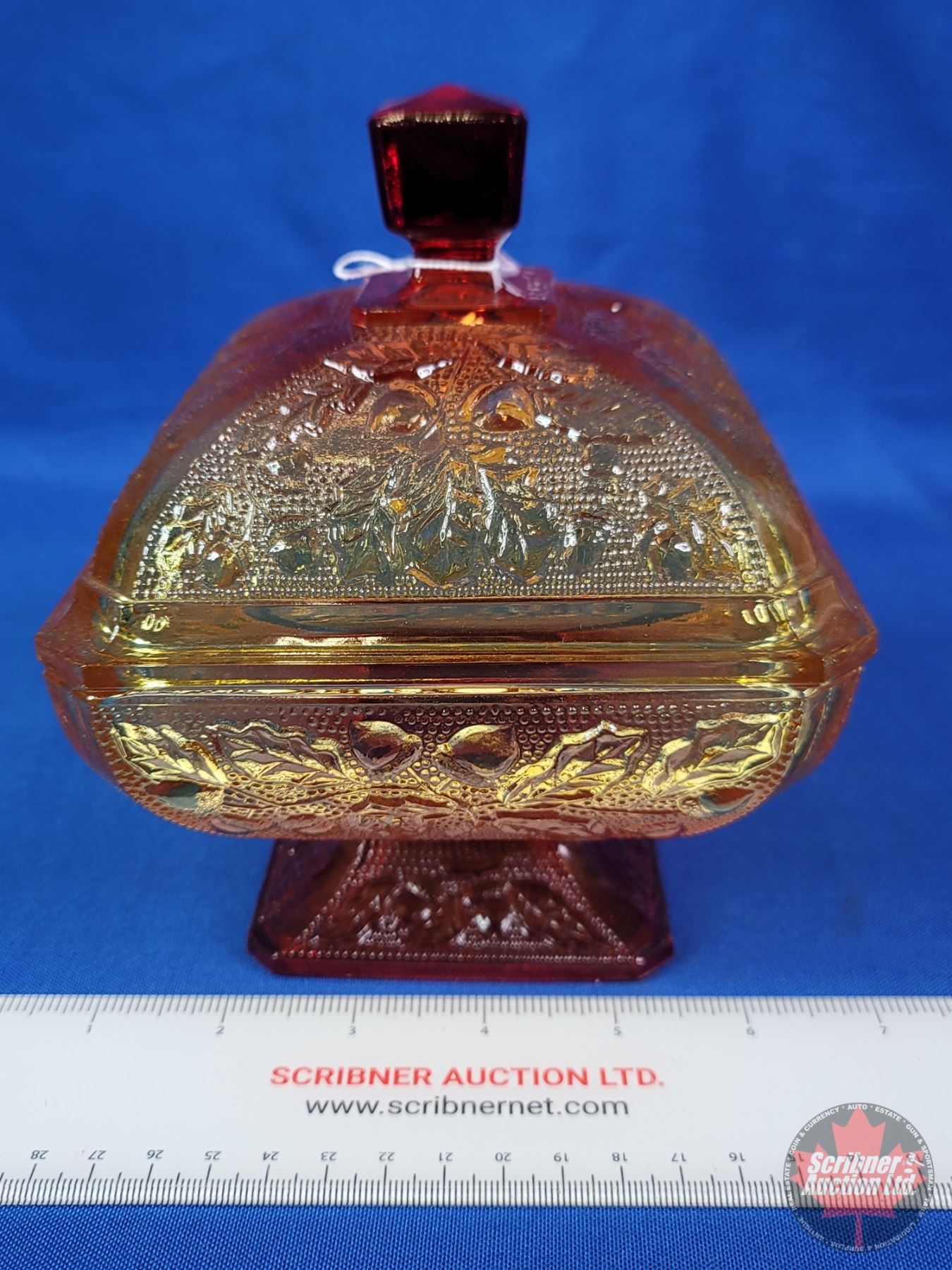 Vintage Jeanette Glass Amberina Covered Dish (7"H) (SEE PICS!)