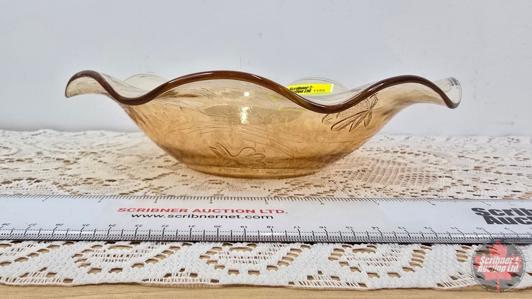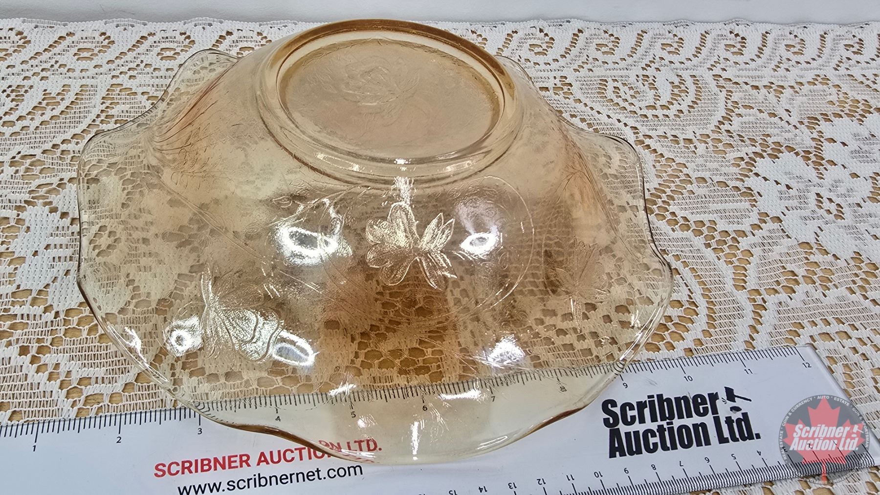 Vintage Jeannette Glass Floragold "Louisa" Pattern: Ruffled Edge : Serving Bowl (Top Dia 9-1/2") (SEE PICS!)