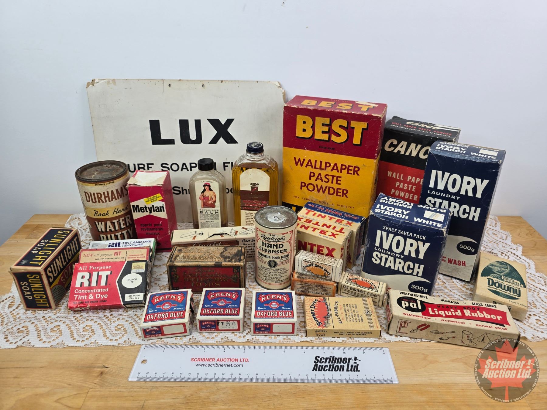 Vintage Kitchen Collector Combo : Starch Boxes; Wall Paper Paste Box; LUX Soap Sign; Water Putty Tin; Variety Tins/Bottles/Boxes (See Pictures for Names/Types) (SEE PICS!)