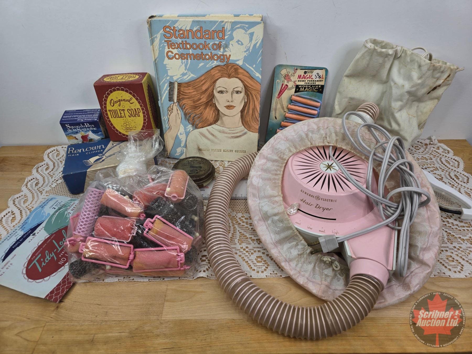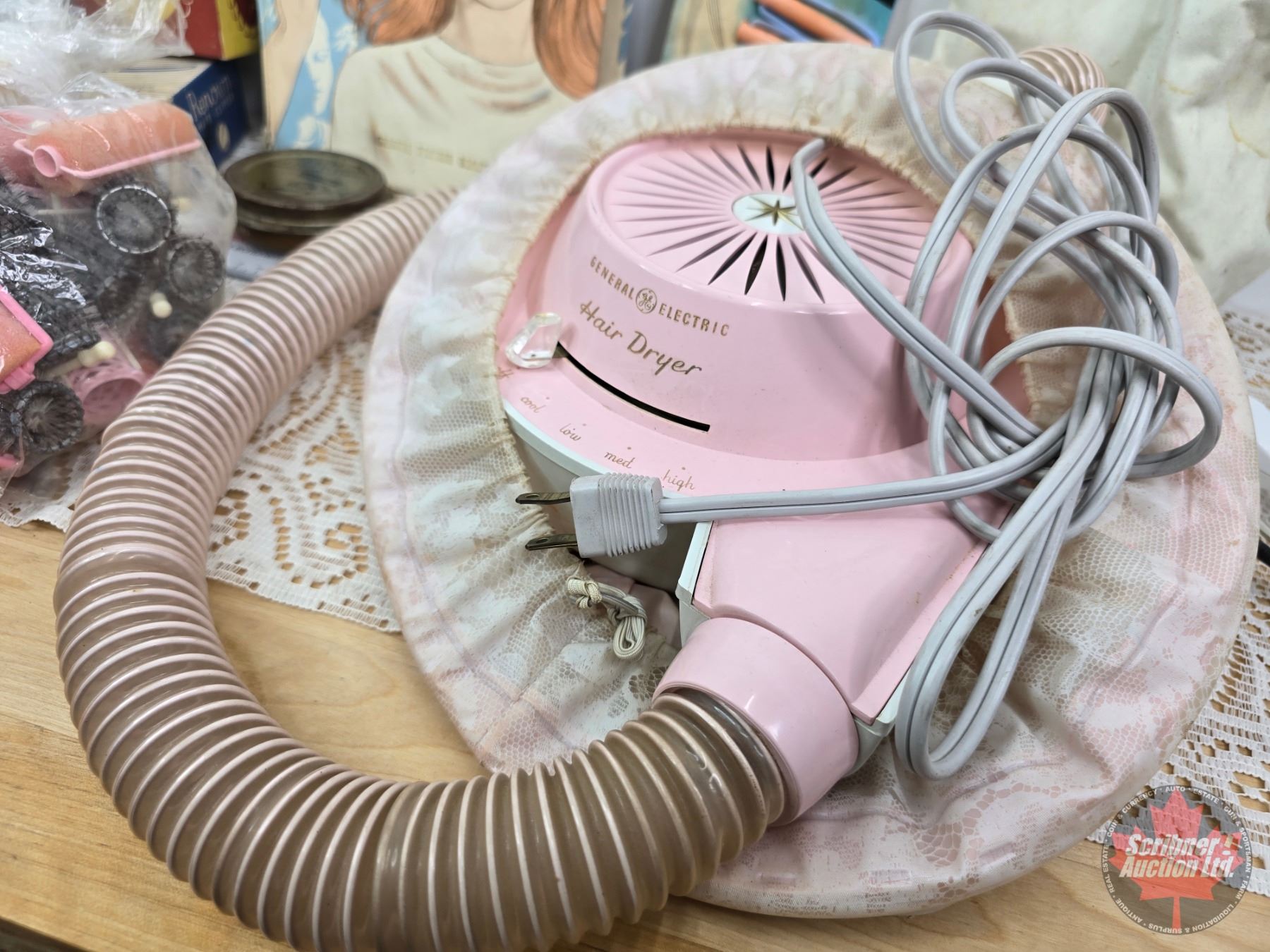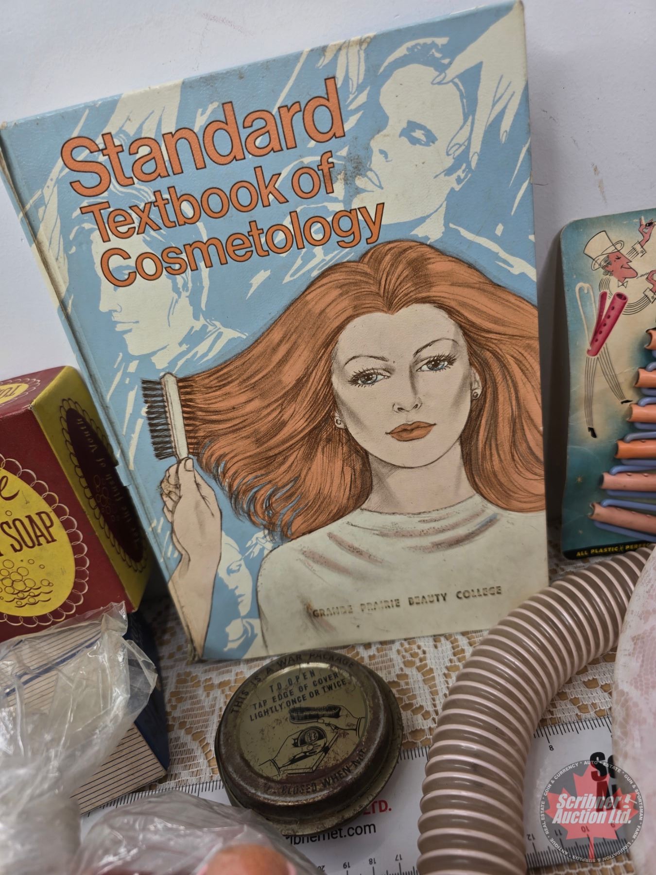 Vintage Ladies Collector Combo including Hair Dryer, Cosmetology Textbook, Curlers, Nylons, etc