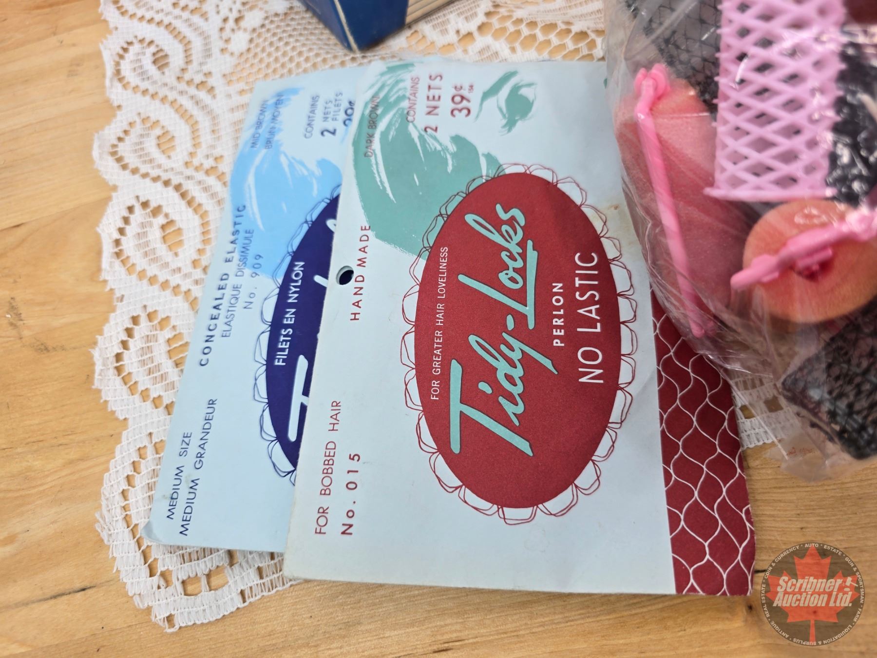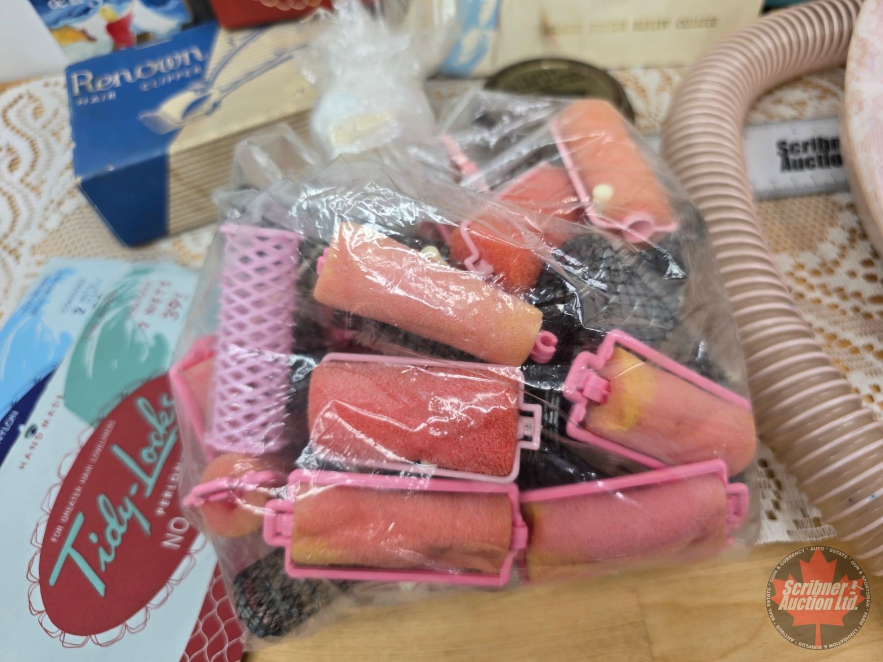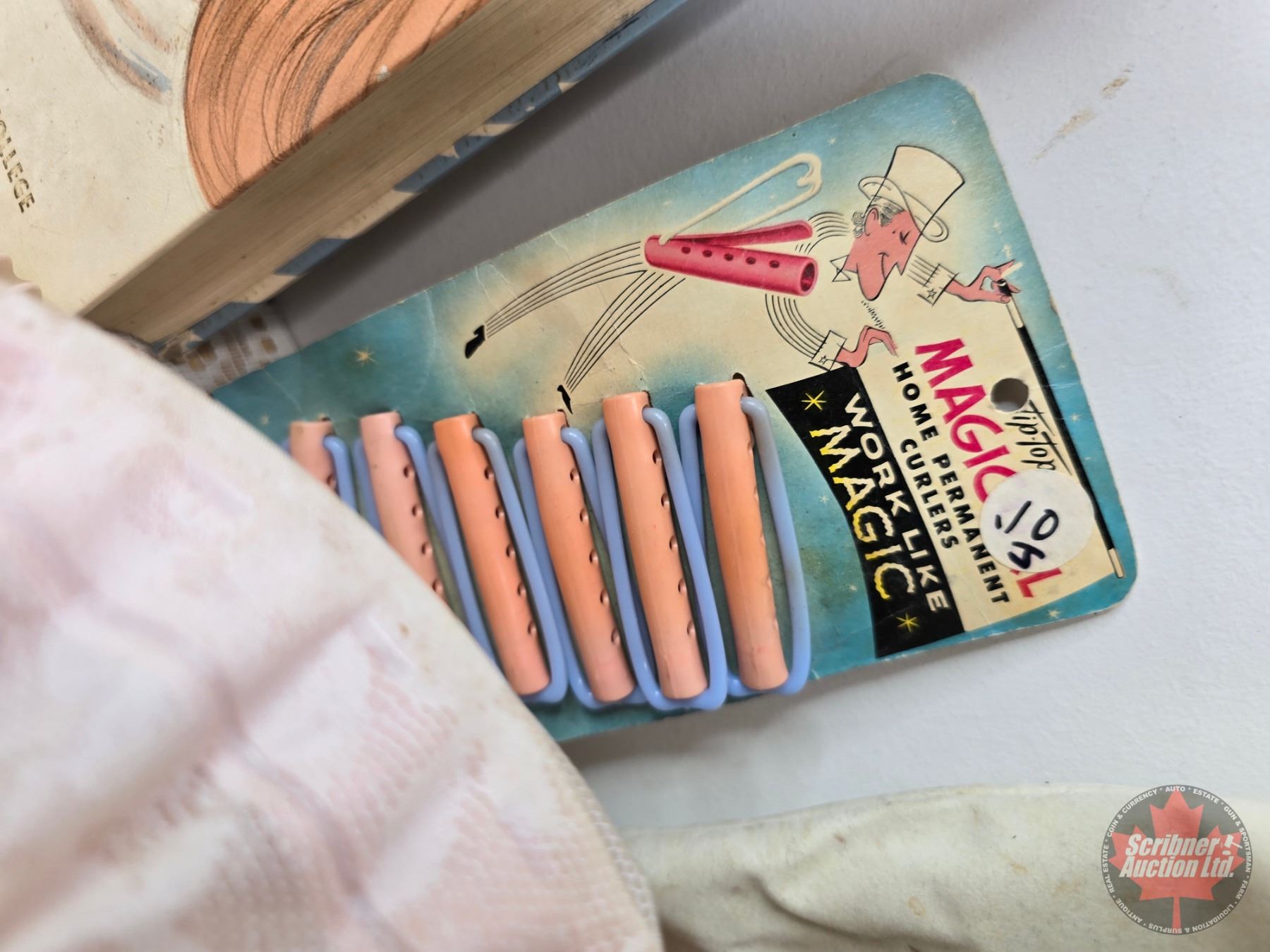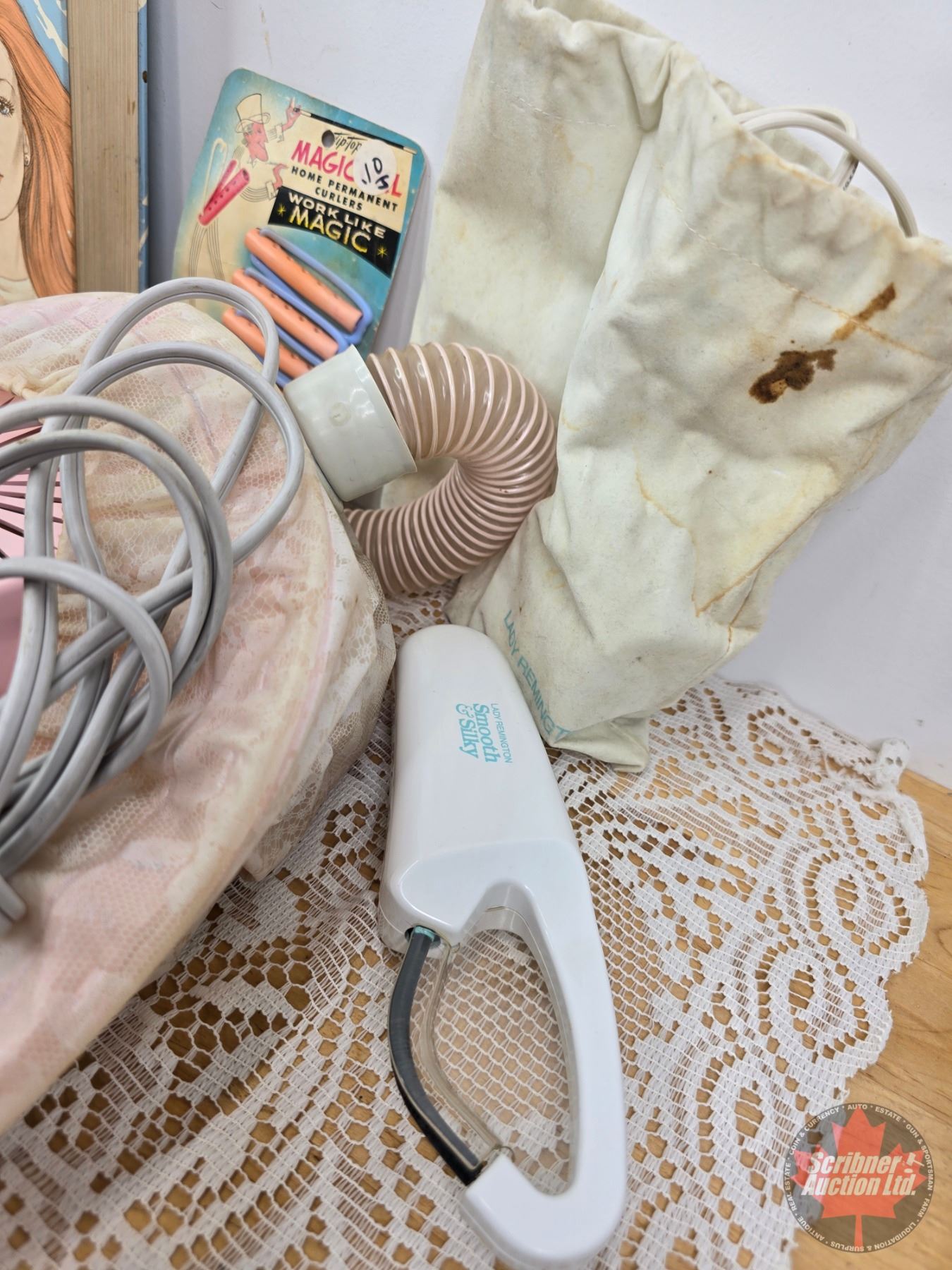 Vintage Ladies Collector Combo including Hair Dryer, Cosmetology Textbook, Curlers, Nylons, etc