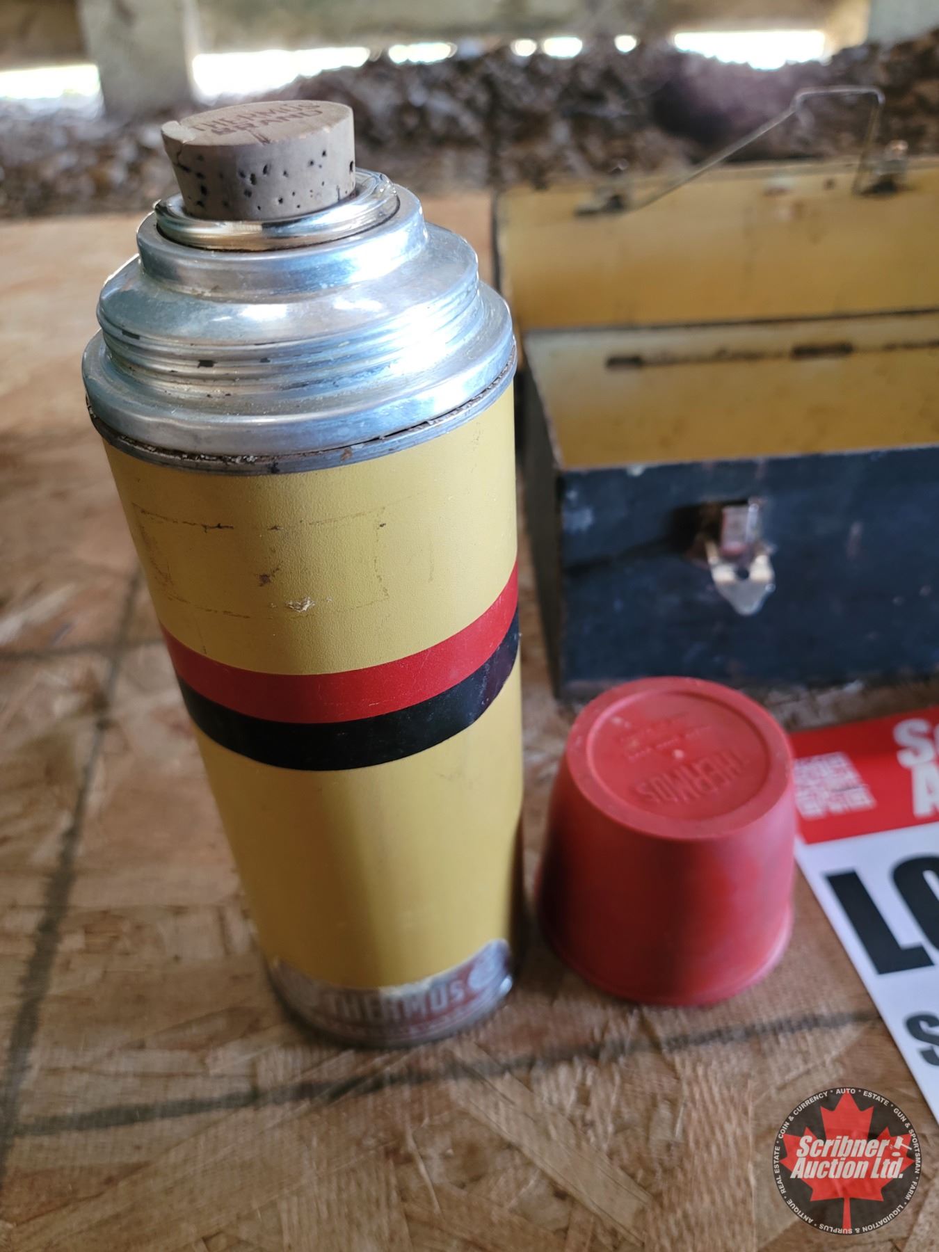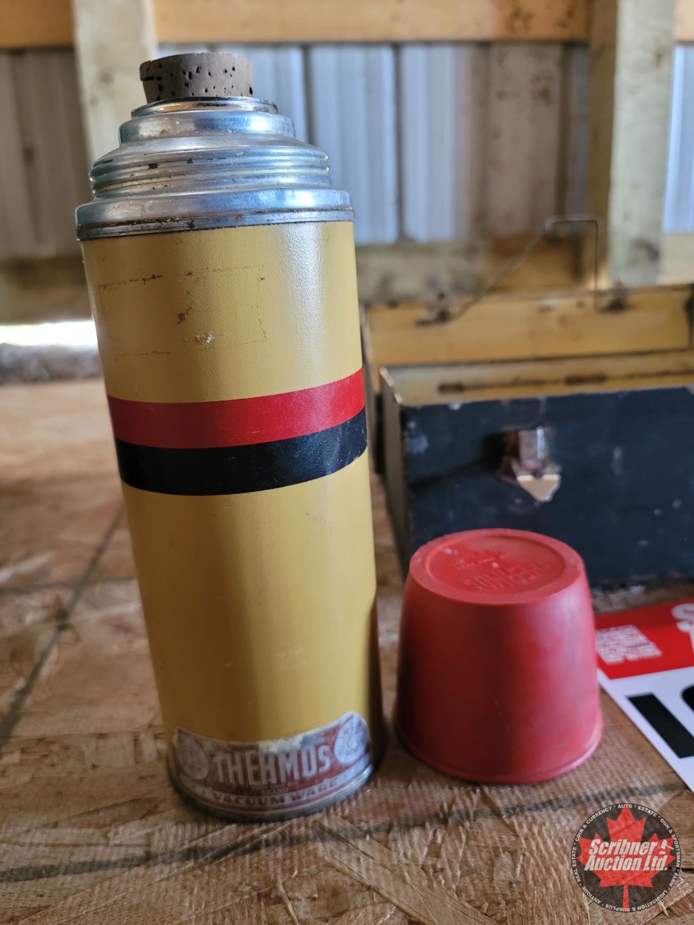 Vintage Tin Lunch Box with Thermos (7-1/2"H x 10"W x 5"W)