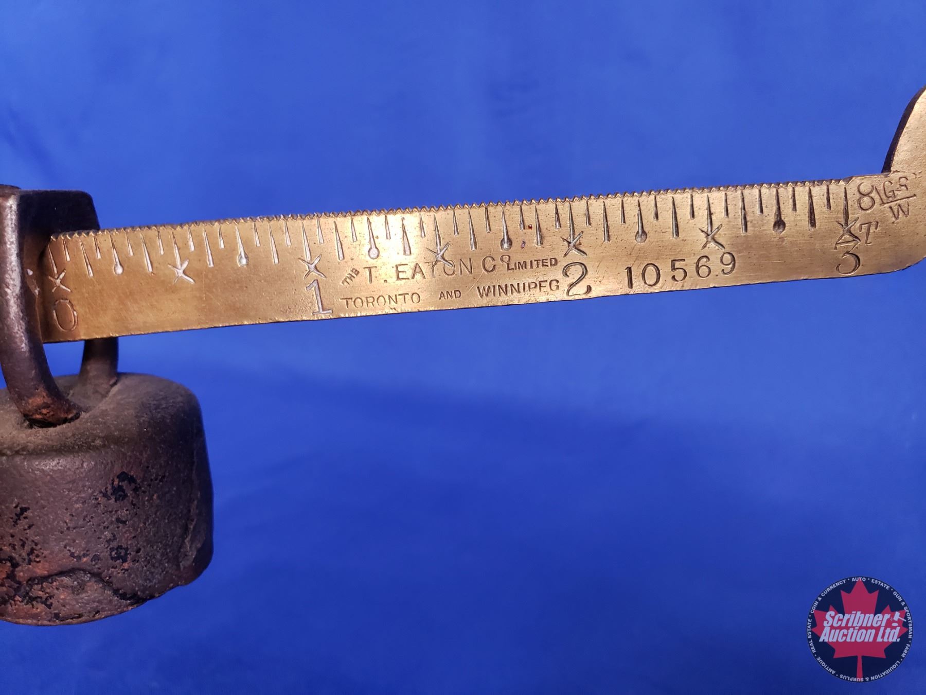 Vintage Toe Claw Crowfoot Scale "The T. Eaton Co. Limited Toronto and Winnipeg" c.1905-19020 (11-1/2"H x 17"W x 9-1/2"D) (SEE PICS!)