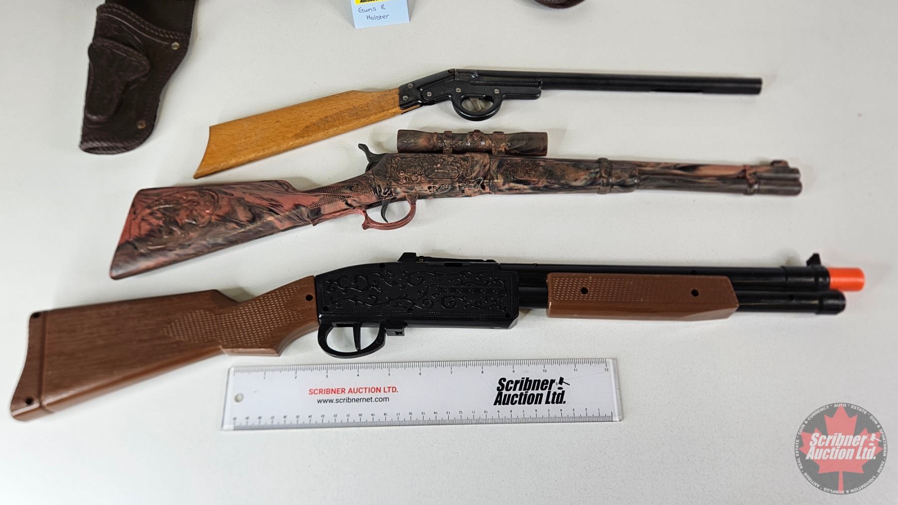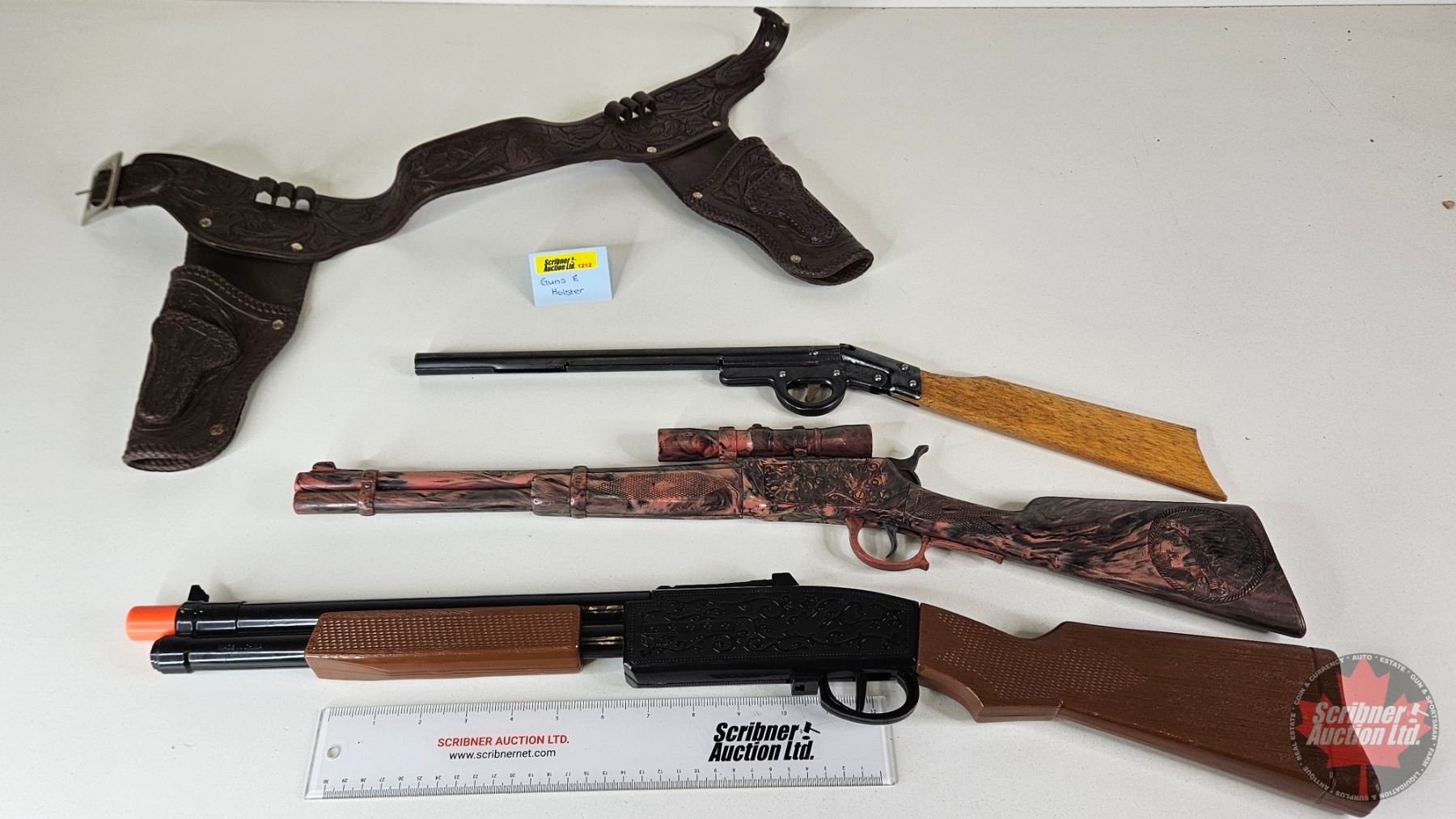 Vintage Toy Rifles (3) w/ Toy Cowboy Belt & Holster