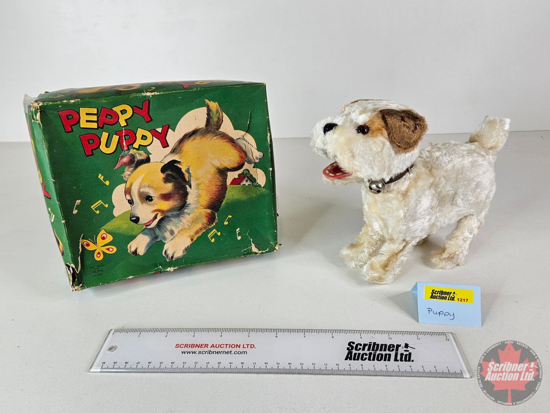 Vintage Wind Up Toy Peppy Puppy c/w Orig. Box (Made By ALPS Japan) (Working)