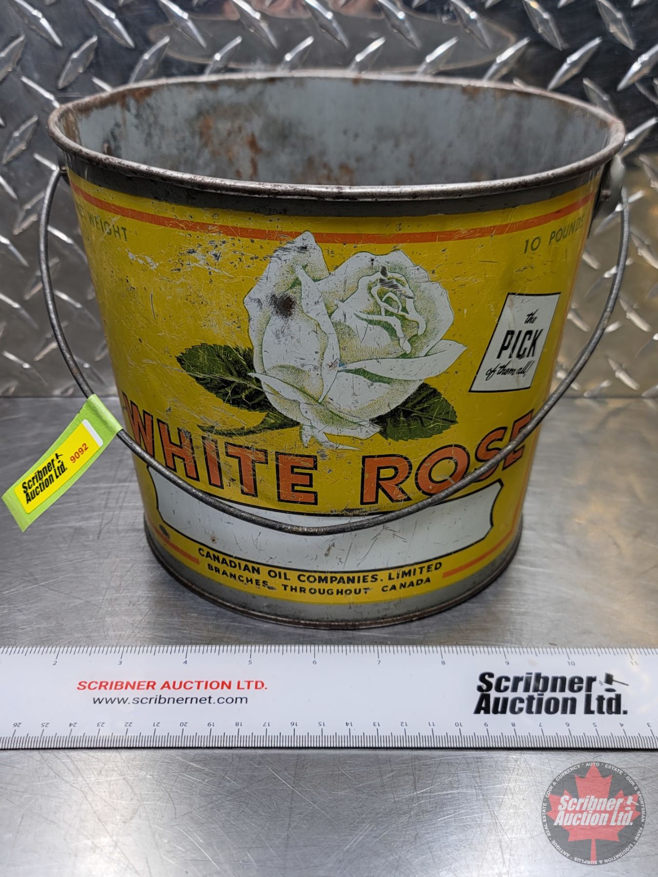 WHITE ROSE : Ten Pound Grease Pail (7-1/2"H x 9"Dia Top) (SEE PICS!)