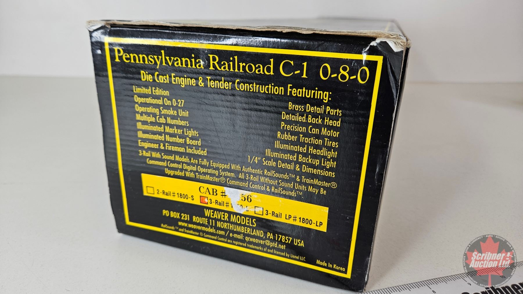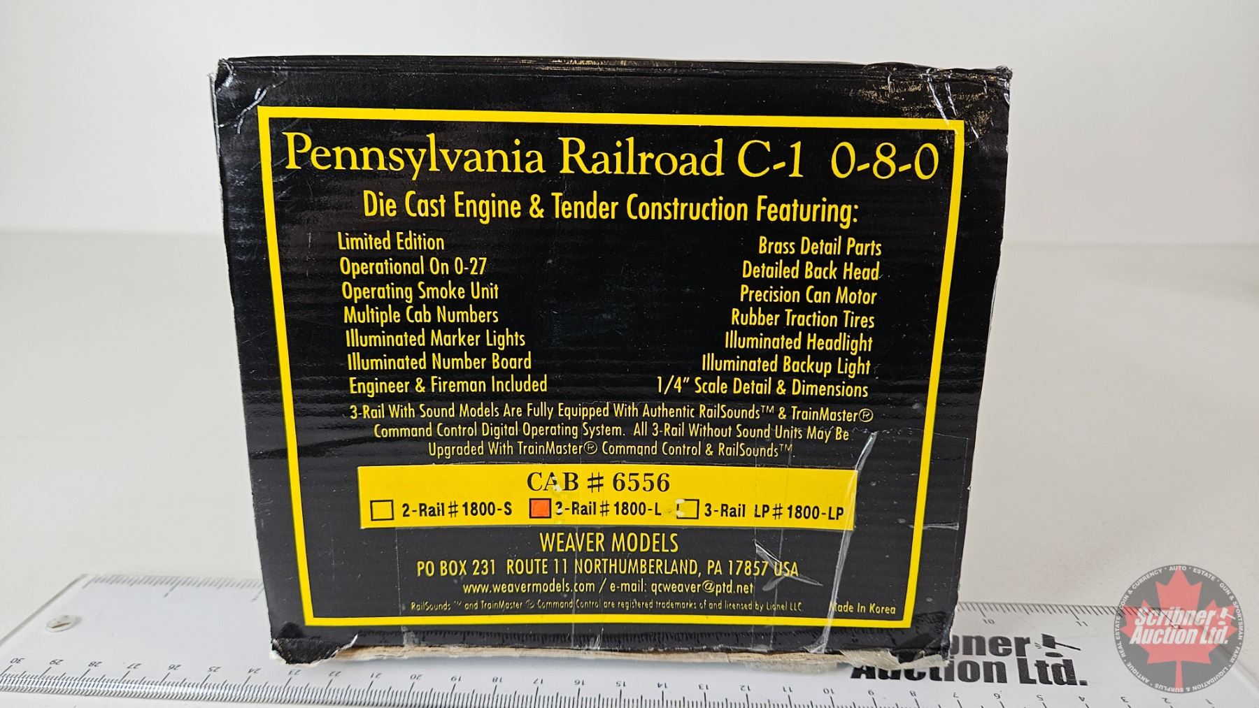 Weaver Pennsylvania Railroad 3-Rail #1800: Locomotive & Tender : O-27 Gauge 1/4" Scale : CAB# 6556