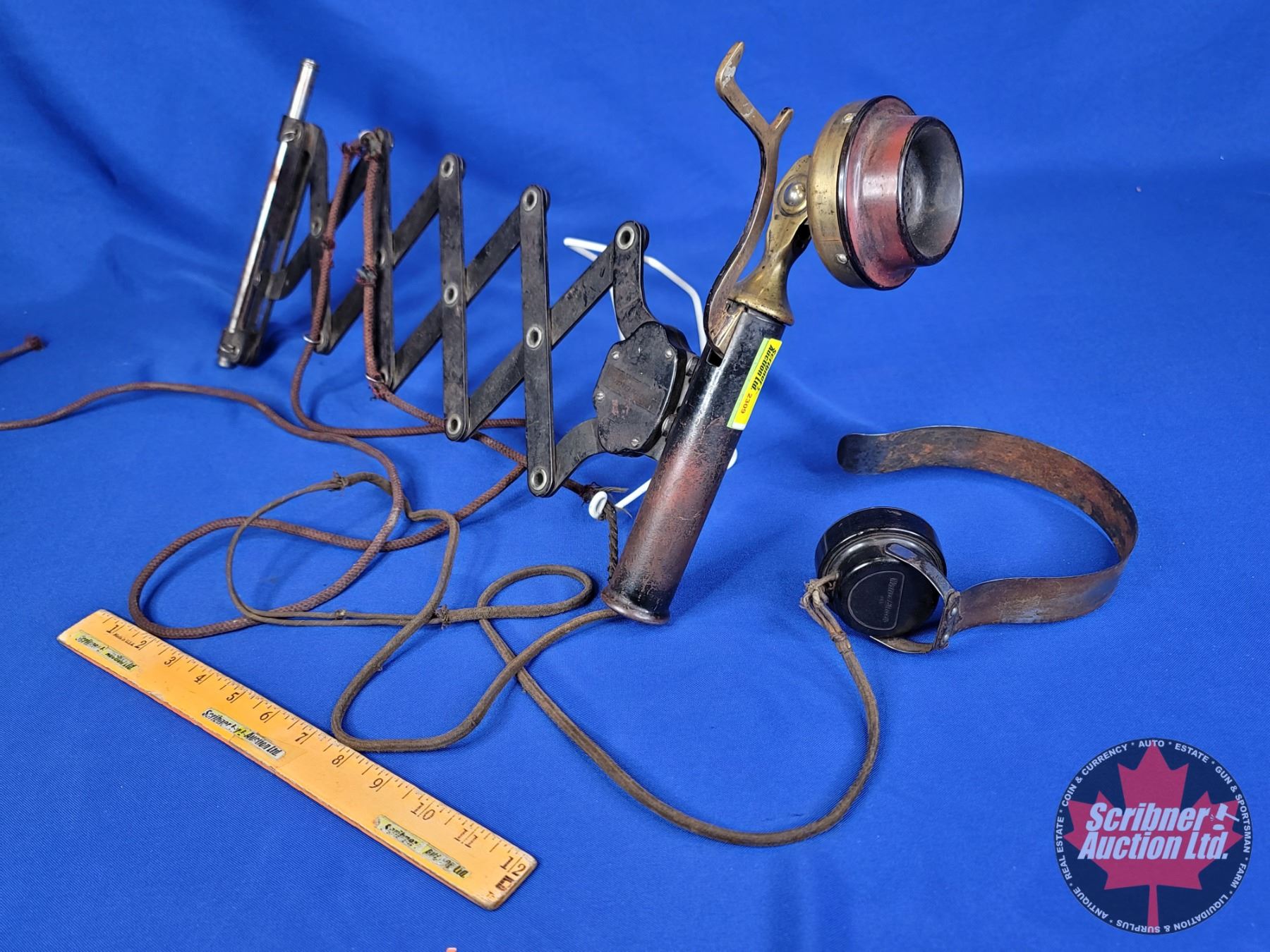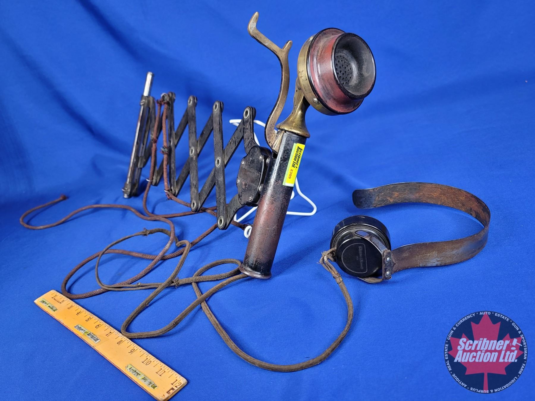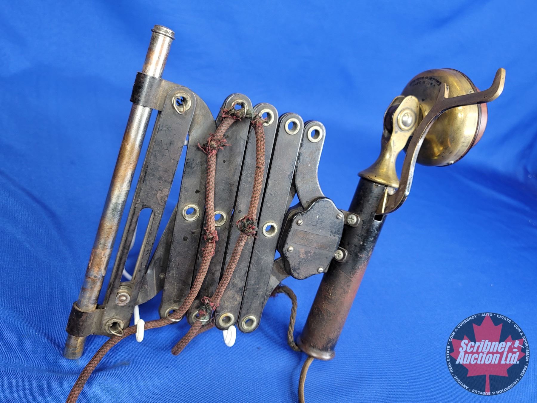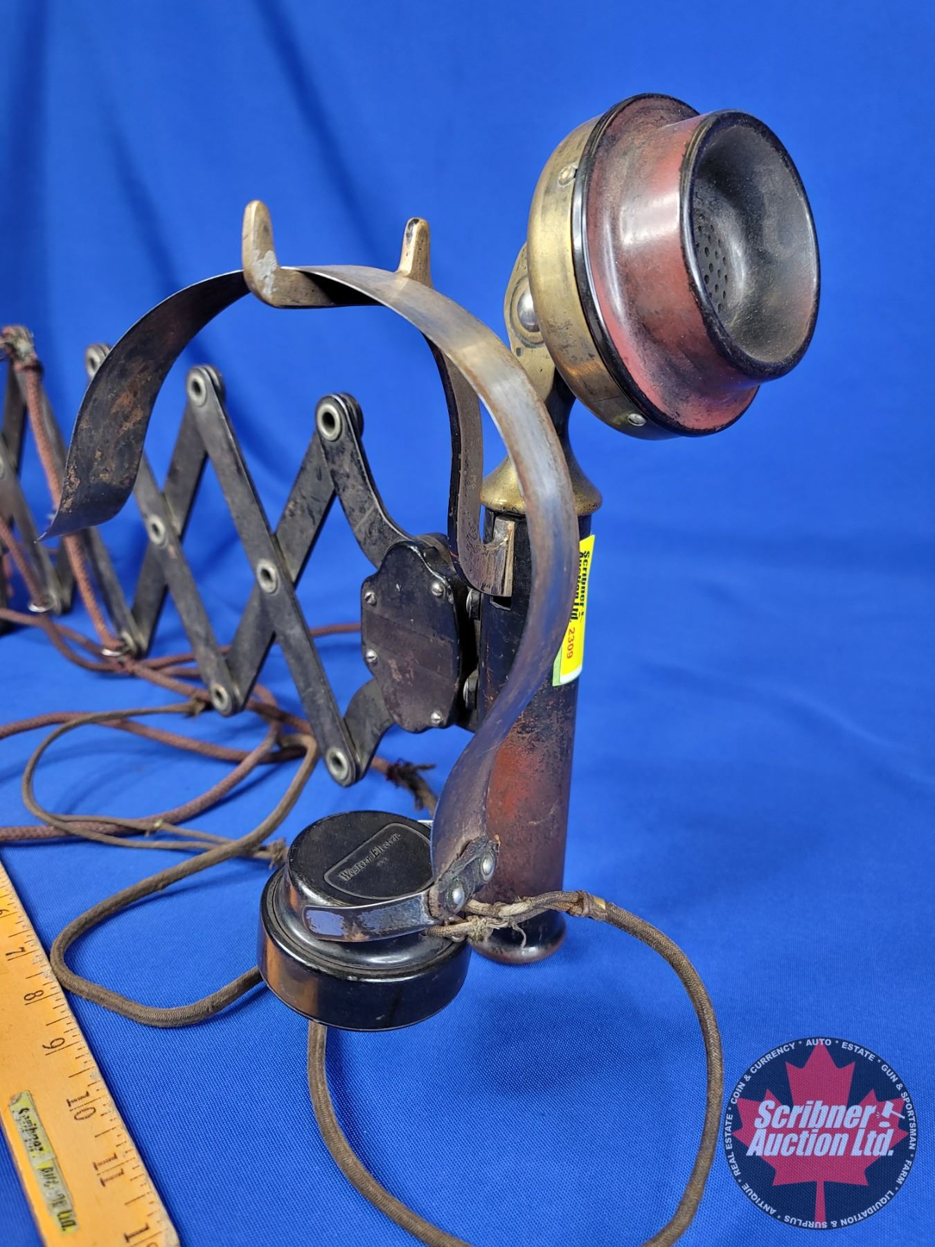 Western Electric Metal Candlestick Scissor Railroad Phone w/ Headset (11"H x 6"W x 11" to 22" D) (SEE PICS!)