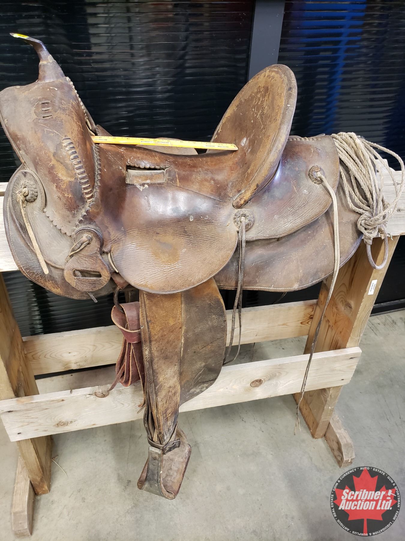 Western Saddle - Maker : CE Coggshall Miles City, Montana (High Back) (13") (Display Stand NOT INCLUDED) (SEE PICS!)