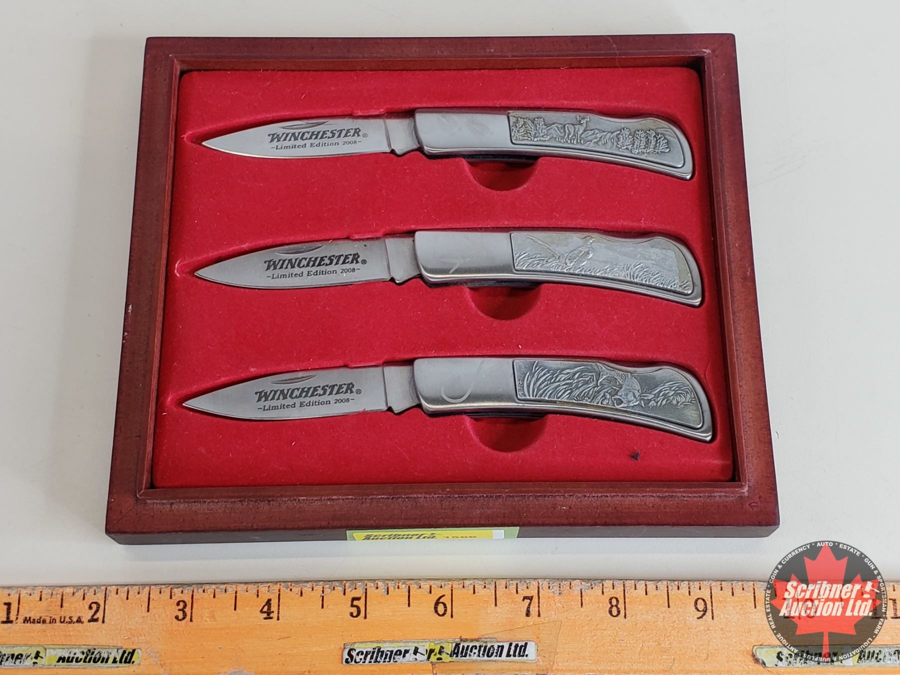 Winchester Limited Edition Collector Knifes (3) in Wooden Display Case (No Lid) (2008)