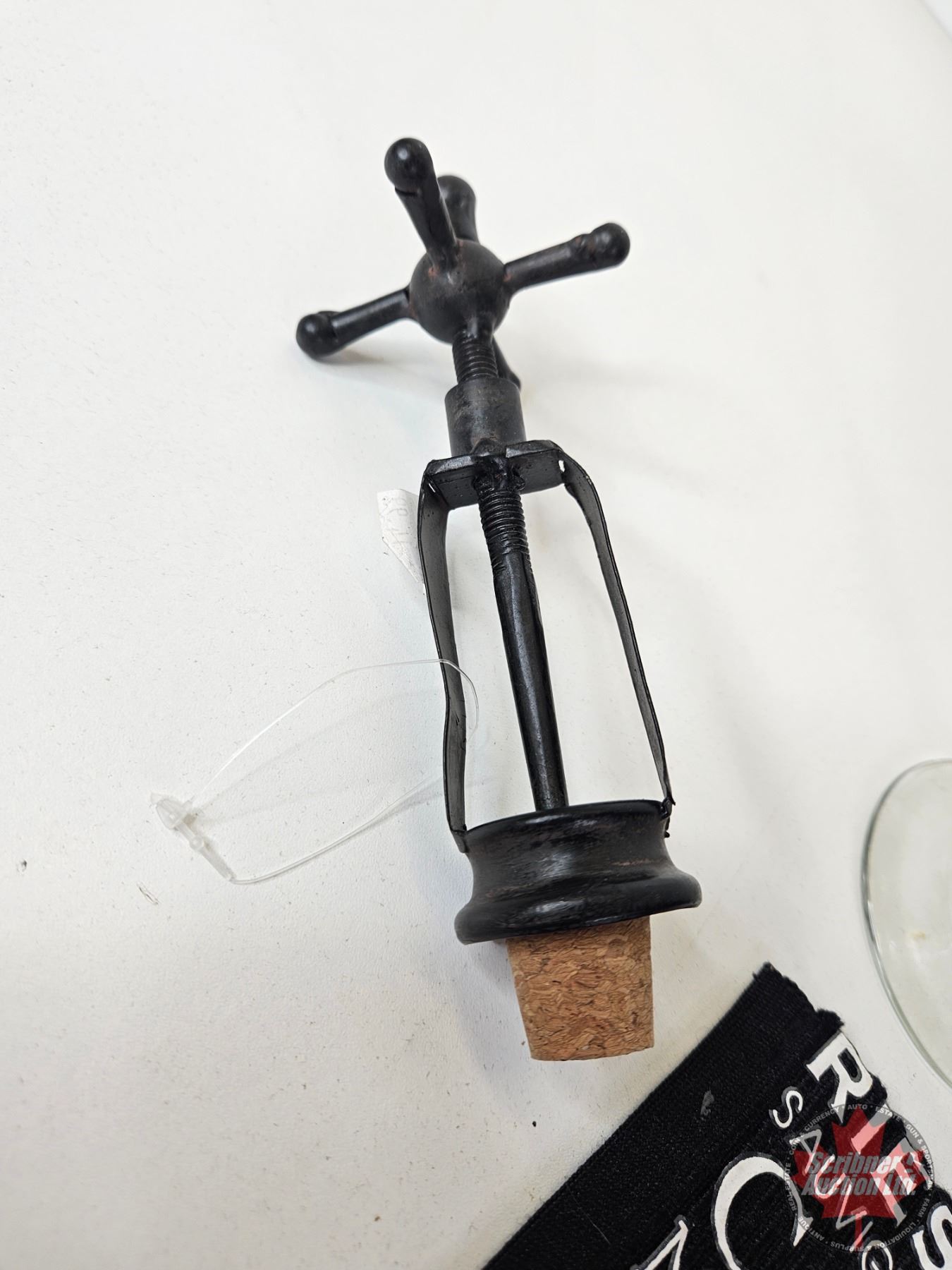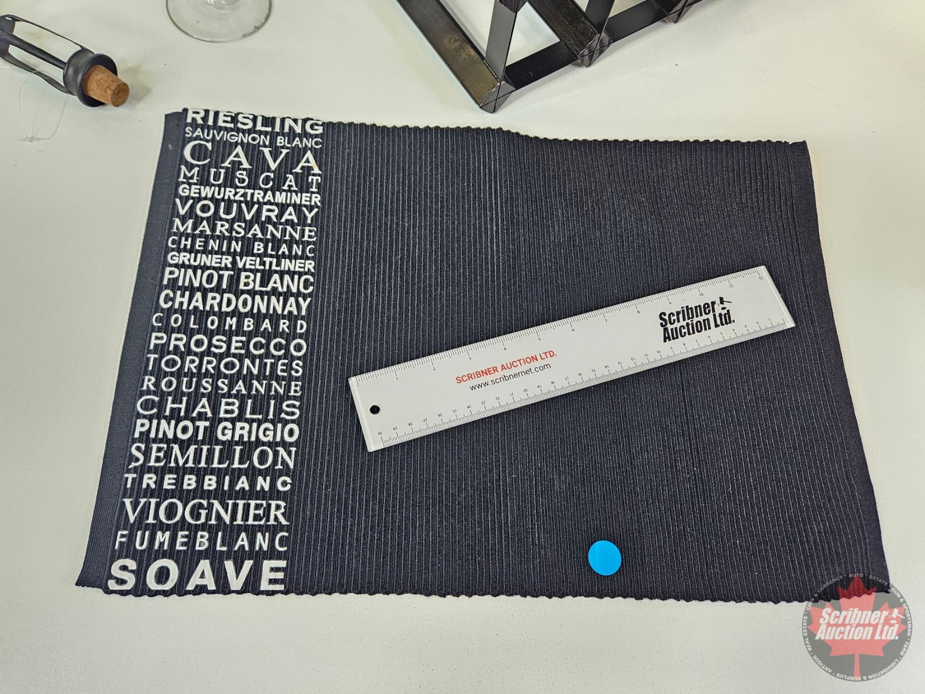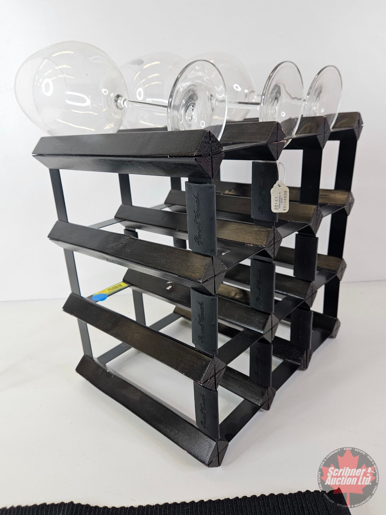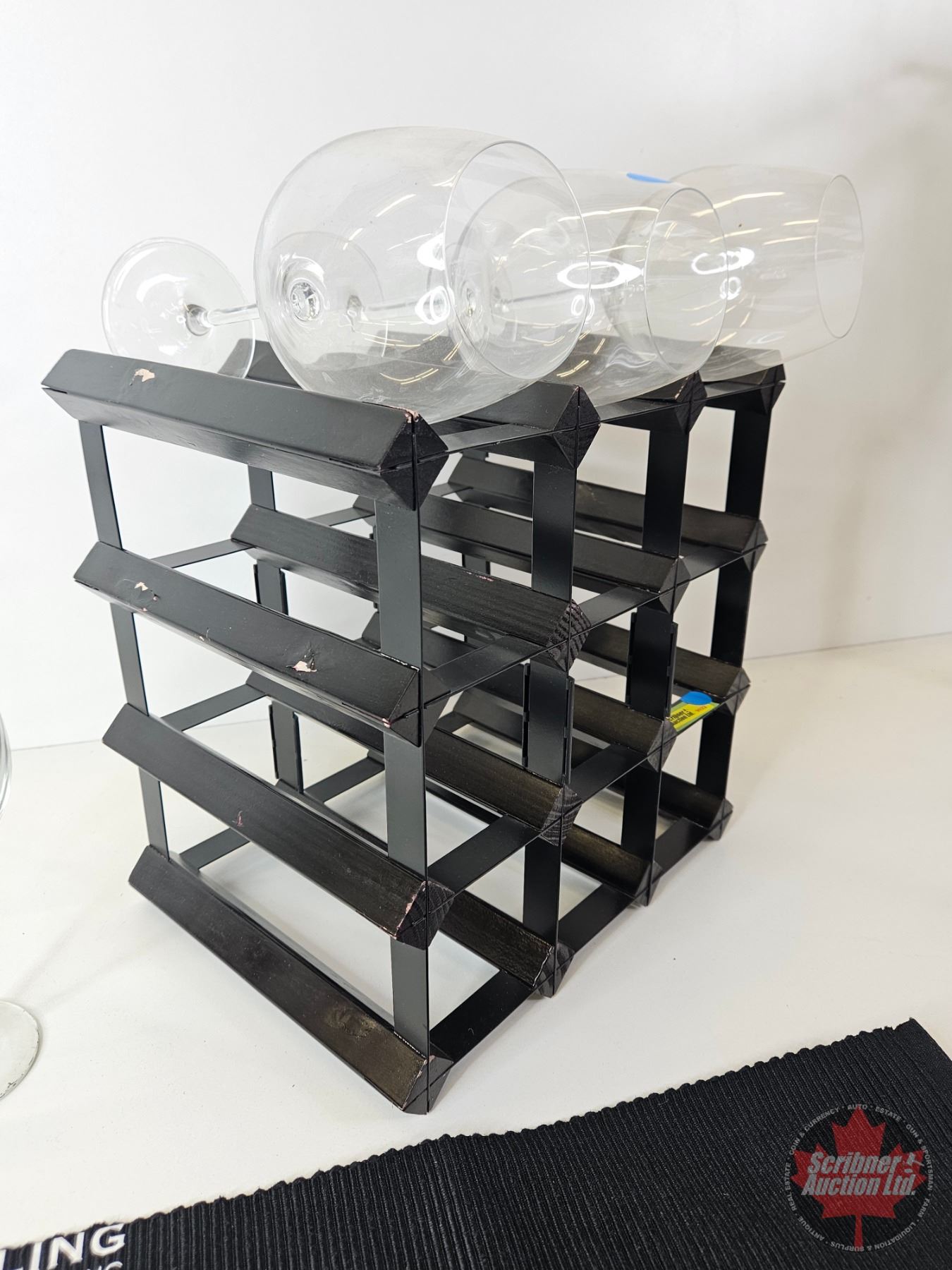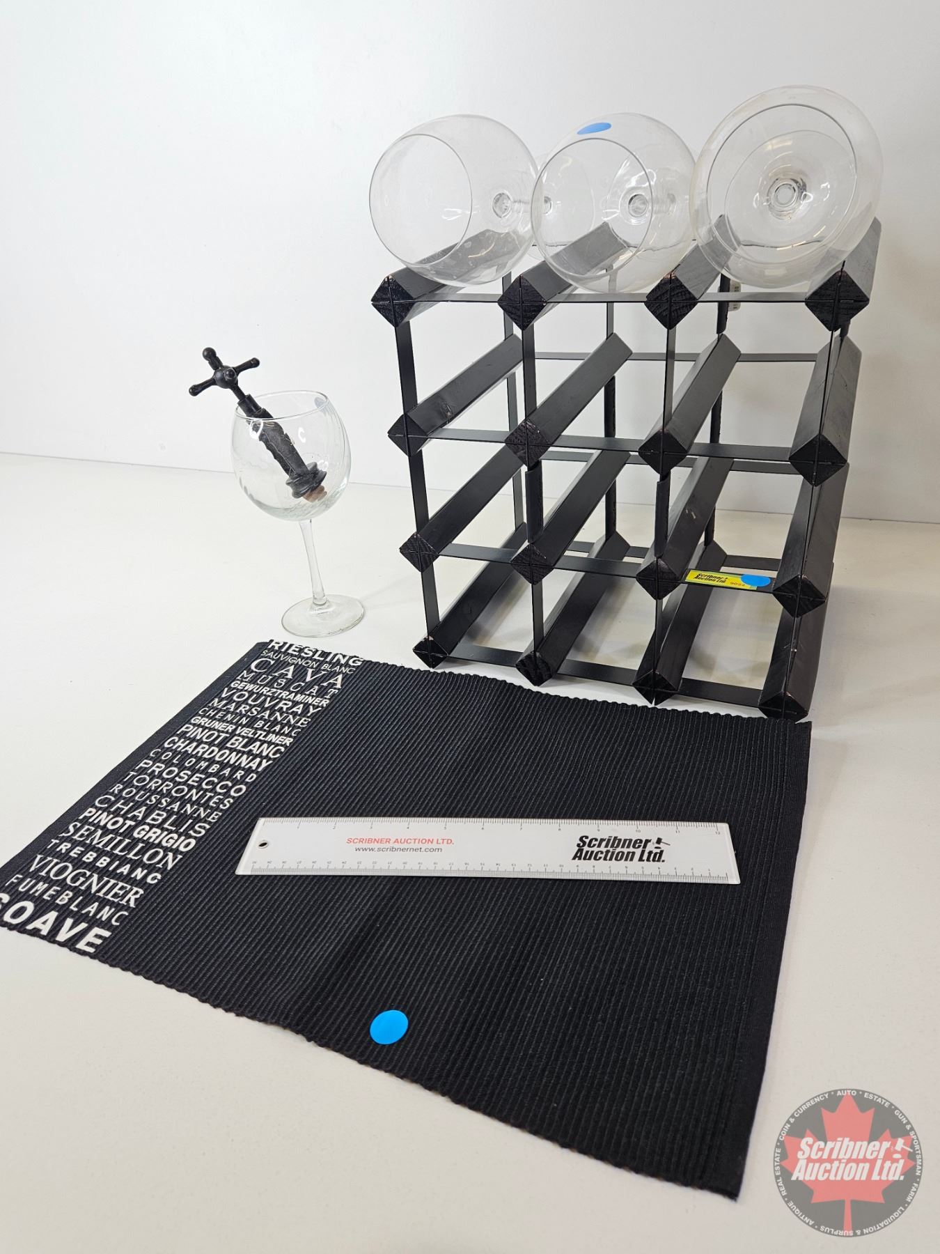 Wine Collector Combo : Black Wooden Wine Rack, Glasses (4), Place Mat & Cork Screw