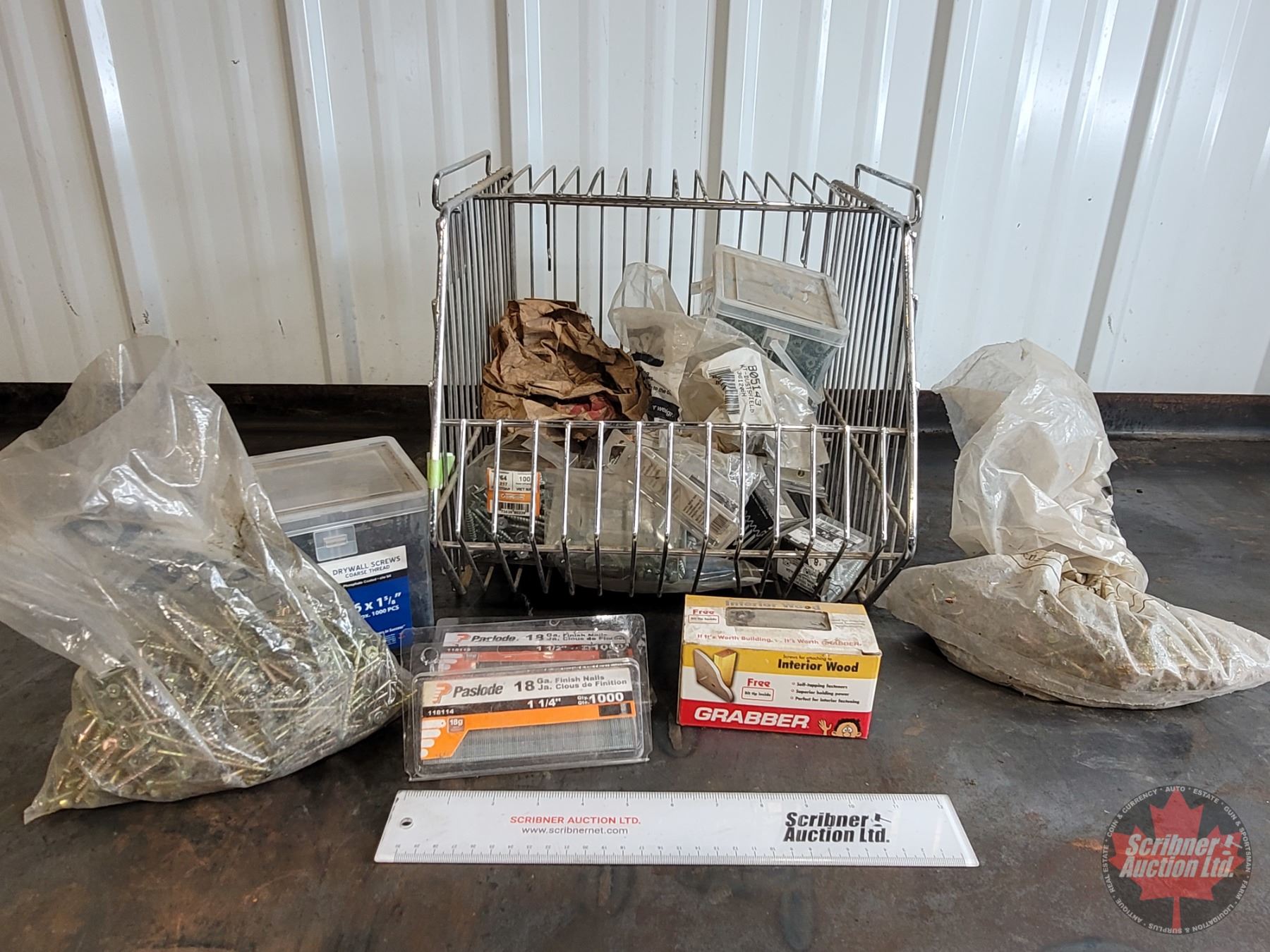 Wire Basket of Fasteners: Brad Nails & Variety of Screws