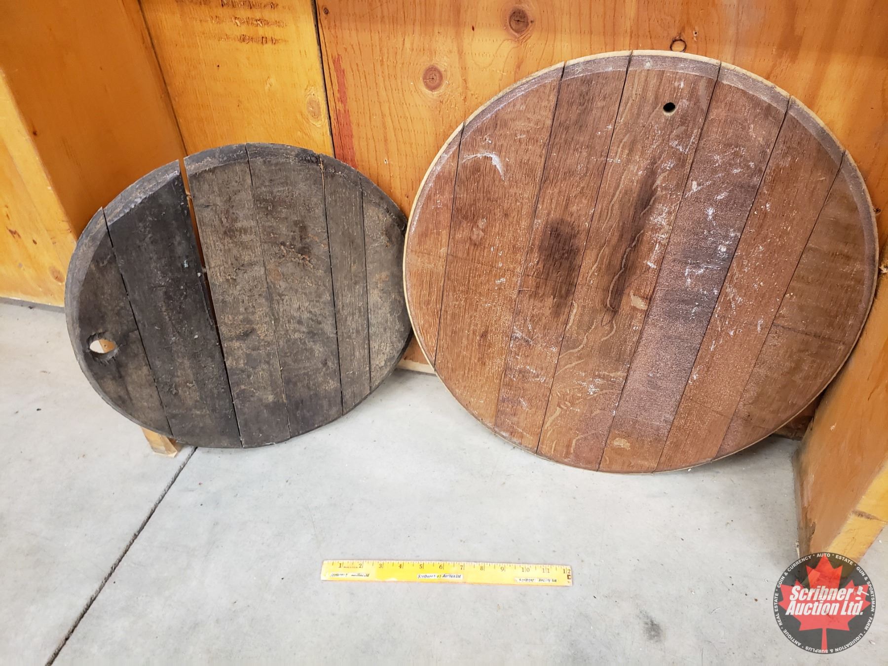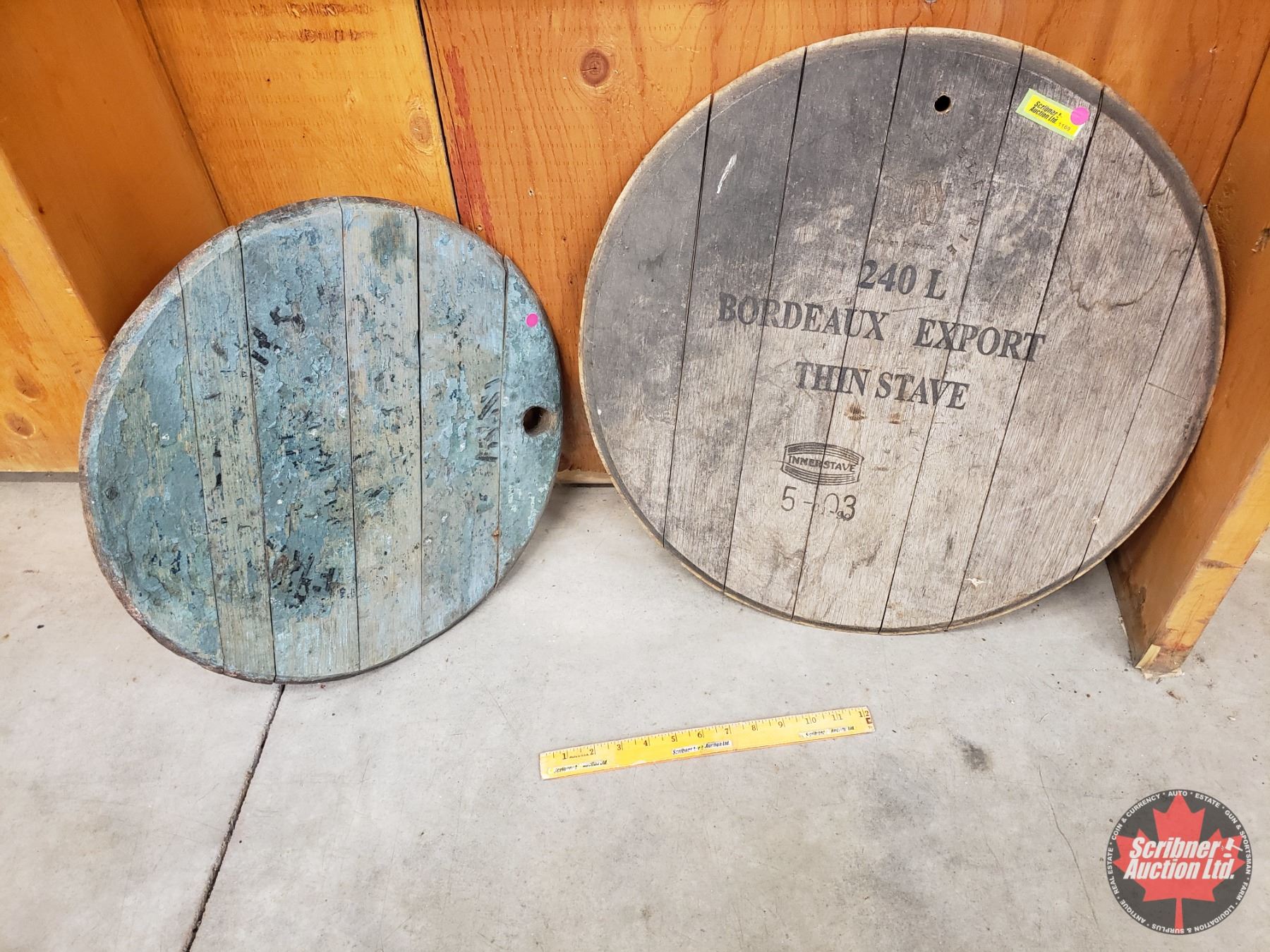 Wood Barrel Lids (2) : 22"Dia "240L BORDEAUX EXPORT" & 18"Dia (SEE PICS!)