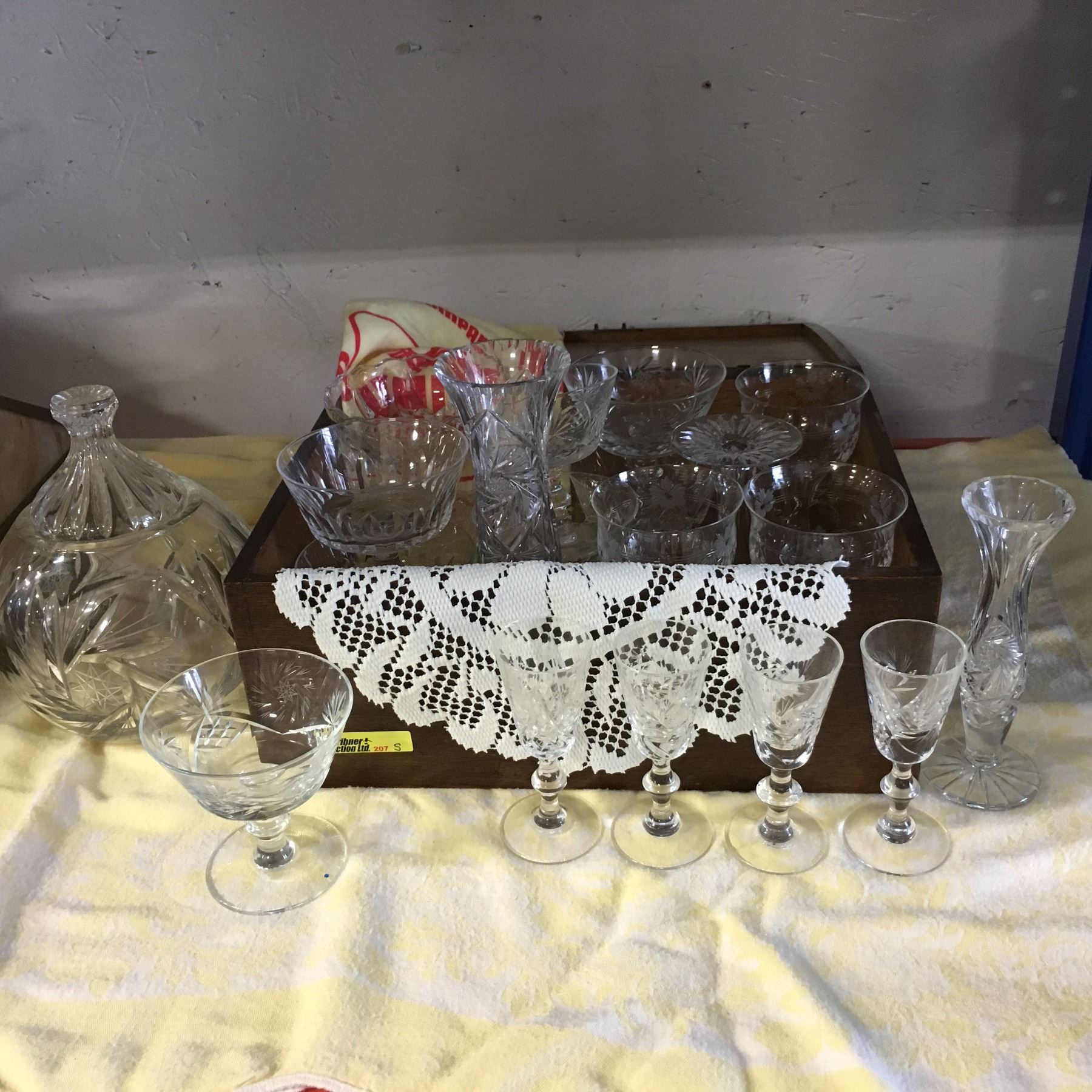 Wooden Box Lot: Variety Crystal / Clear Glass