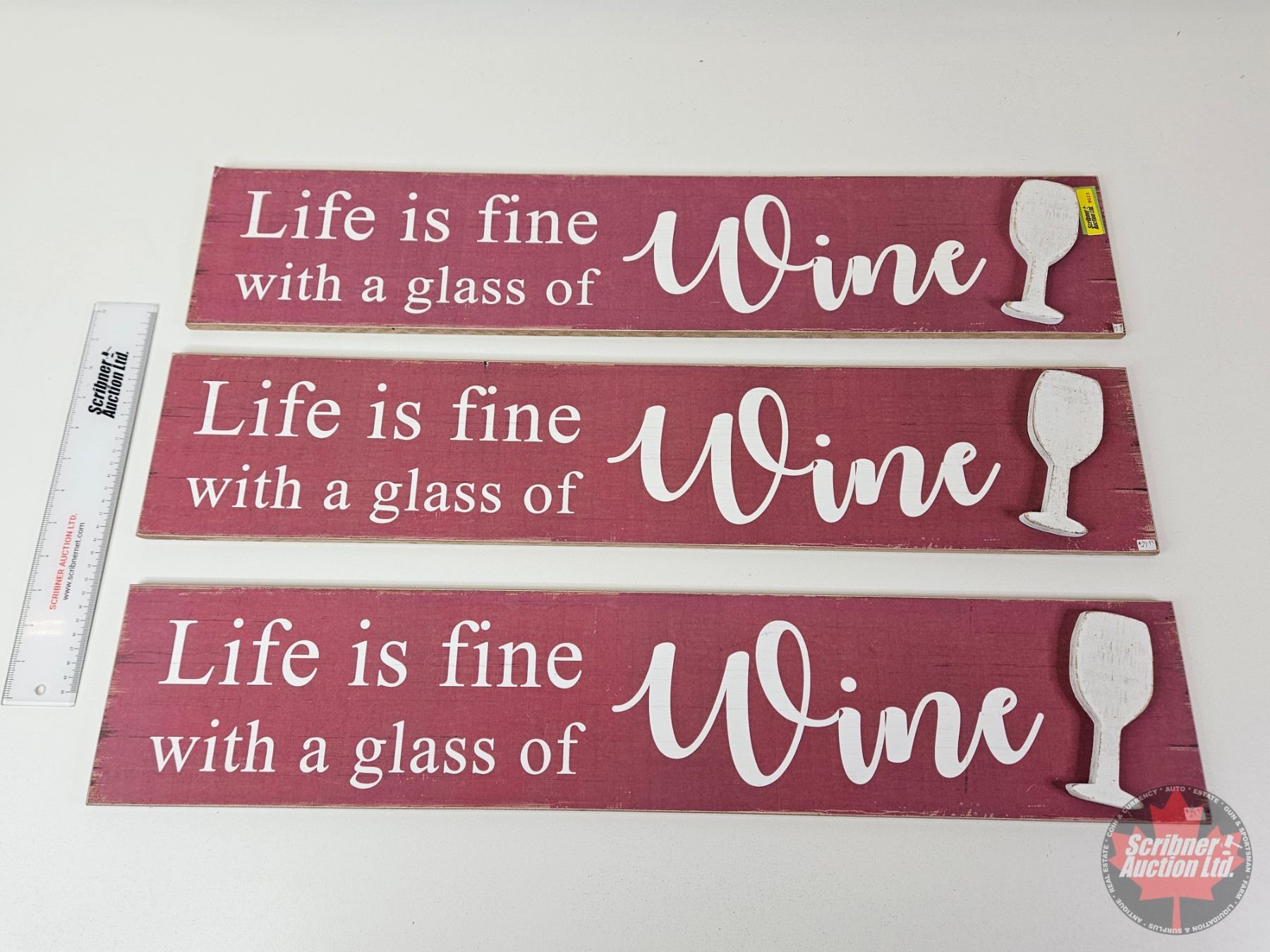 Wooden Signs (3) : "Life is fine with a glass of Wine"