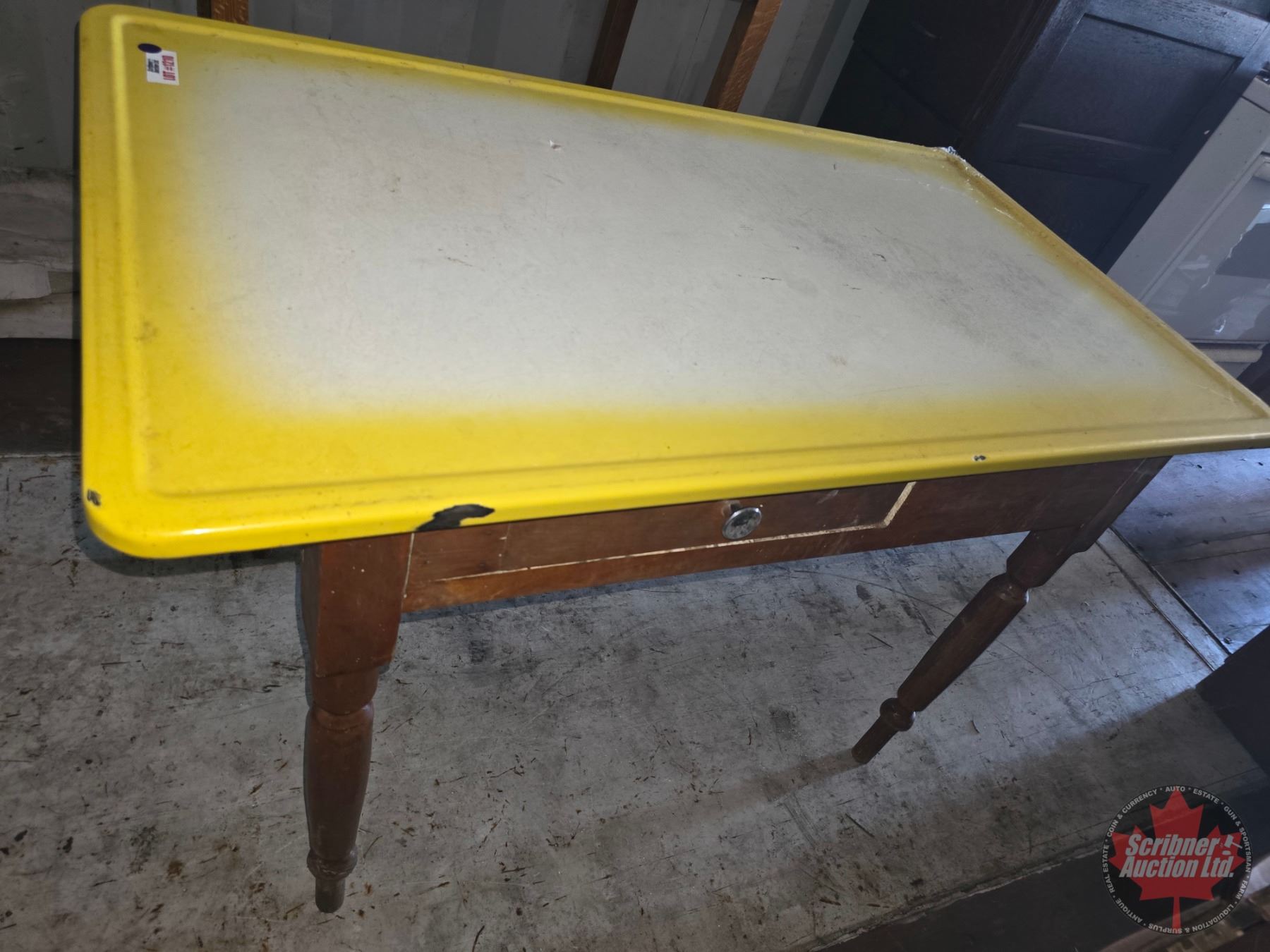 Wooden Table w/Enamel Top & Drawer