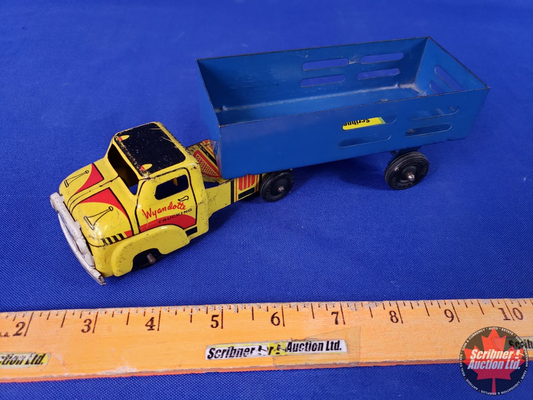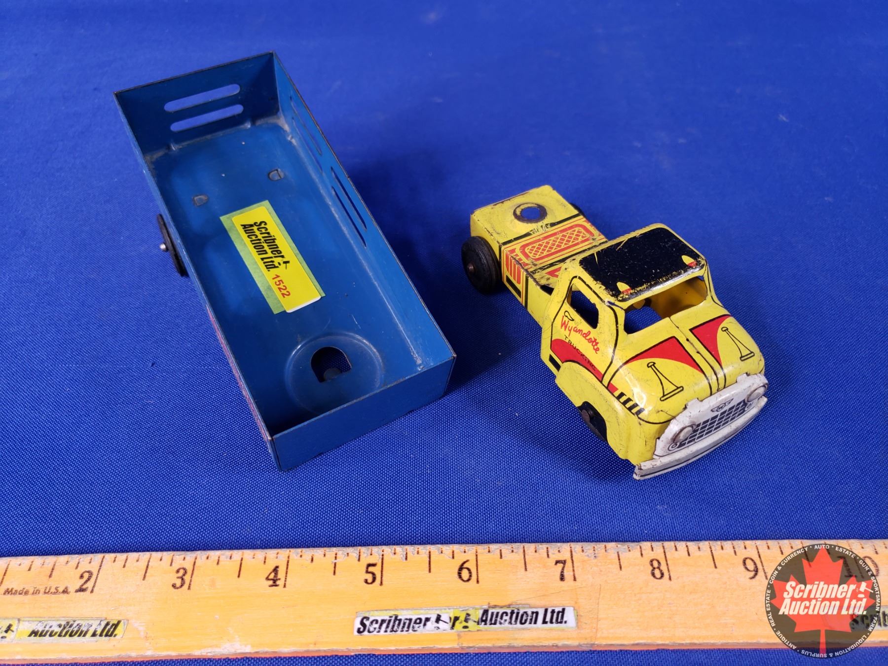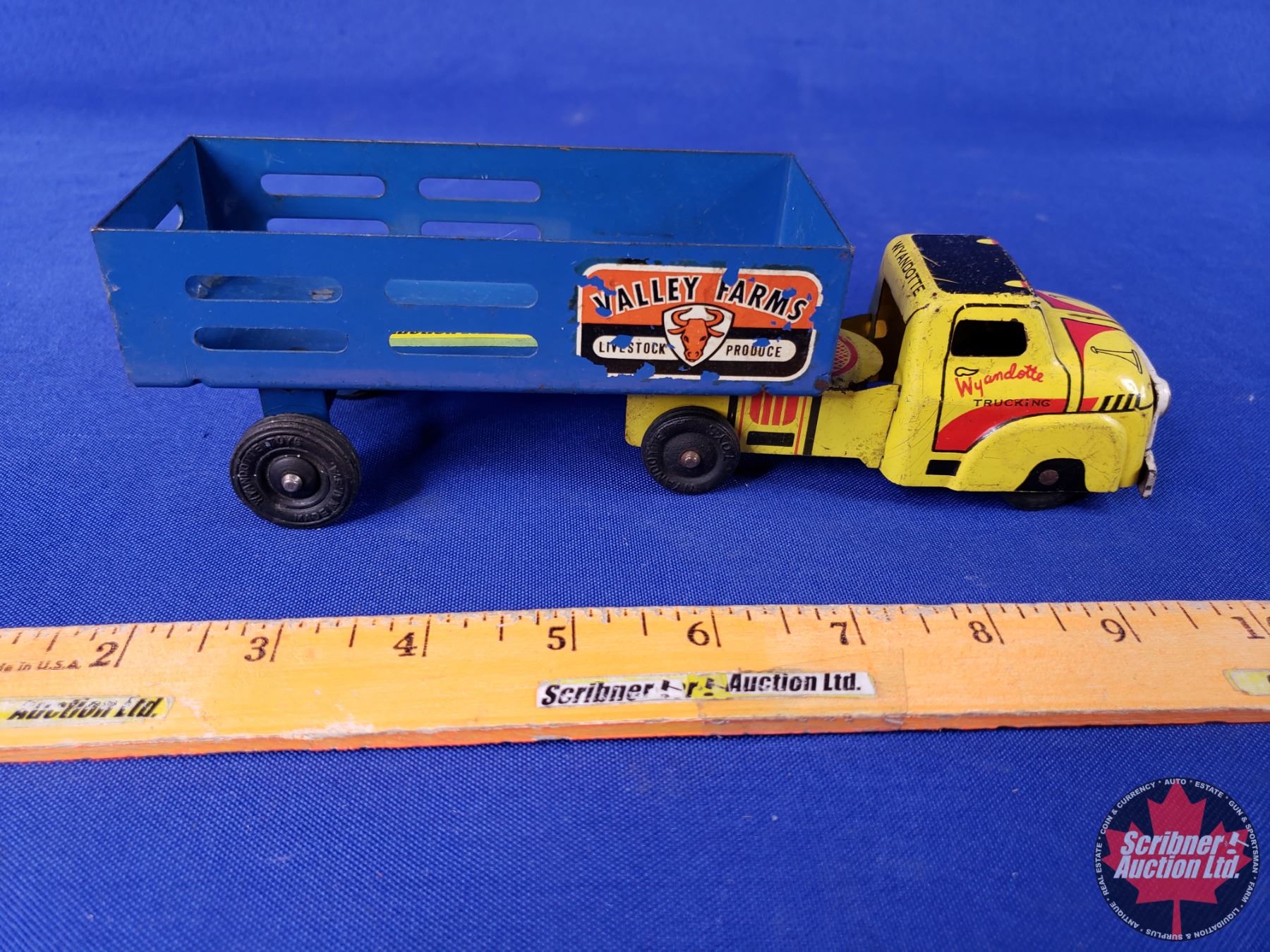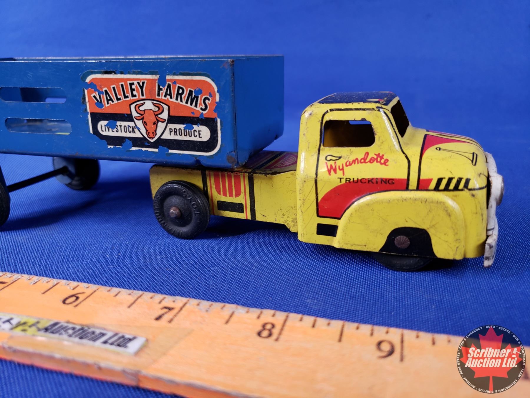 Wyandotte Tin Toy Truck & Trailer "VALLEY FARMS" (2-1/2"H x 2-1/4"W x 8-1/2"D) (SEE PICS!)